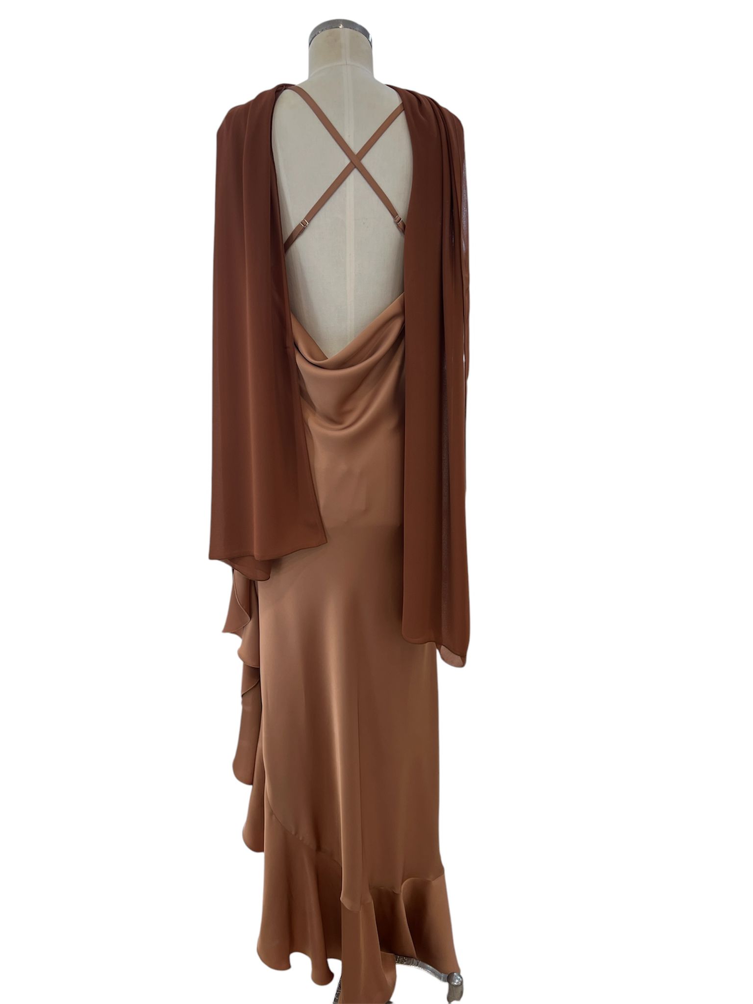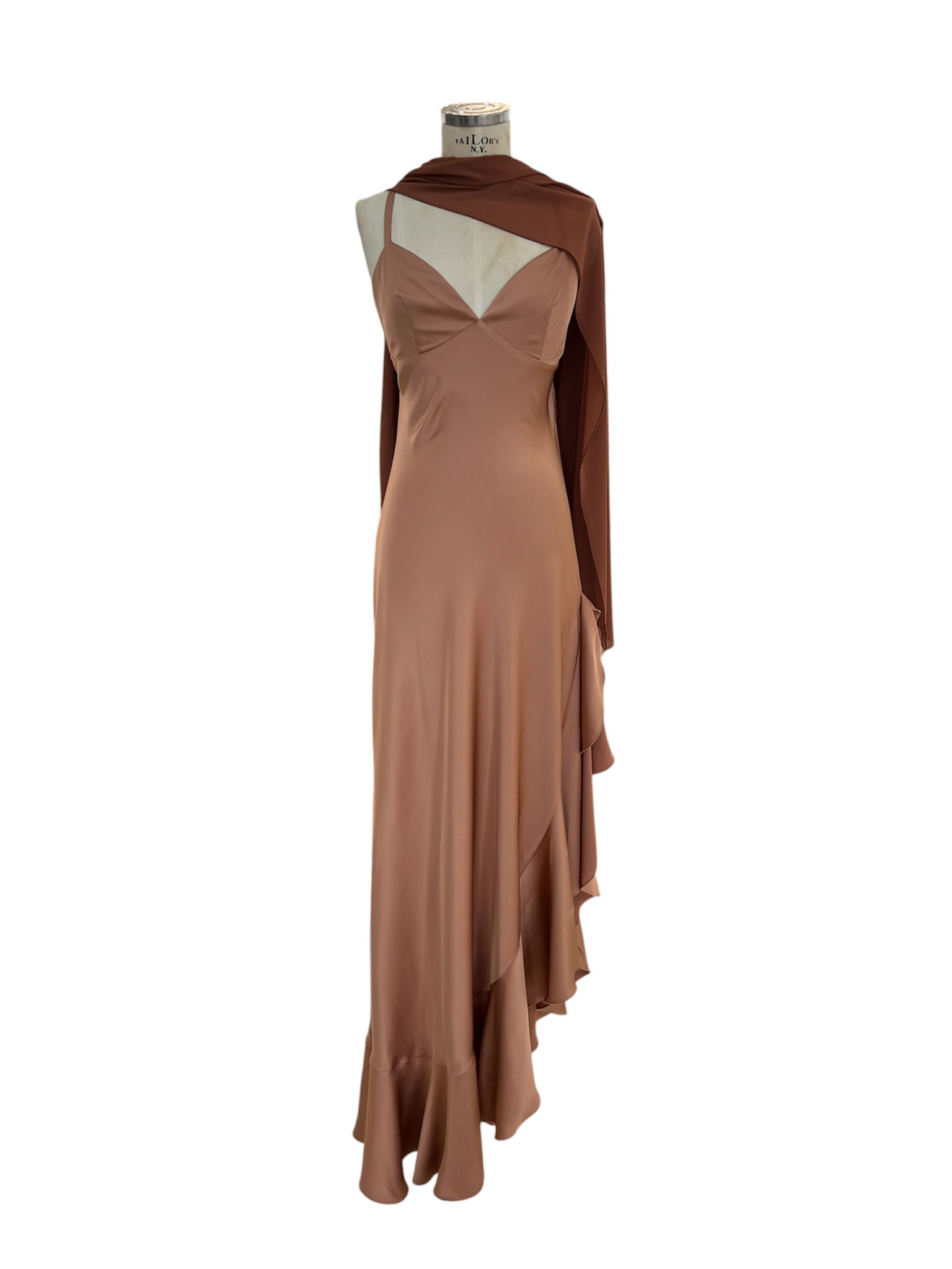 ABITO IN SATEN E ROUCHES SU SPACCO CON STOLA