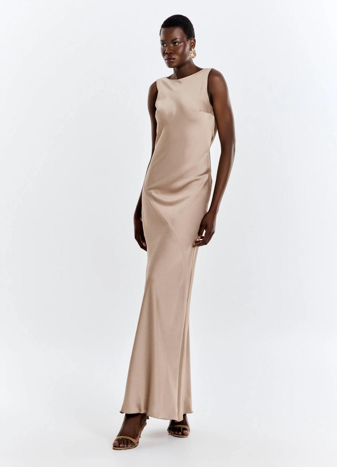 ABITO LUNGO IN SATEN SCOLLO AD ANELLO DIETRO