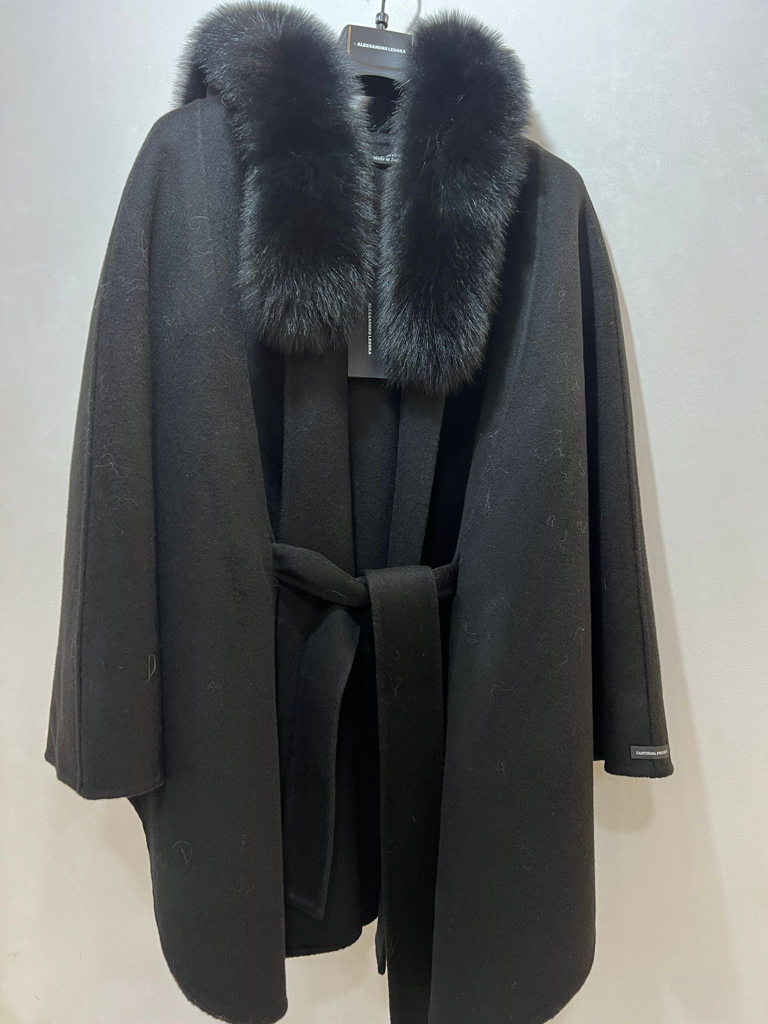 CAPPA CON CINTURA E CAPPUCCIO BORDO DI PELLICCIA