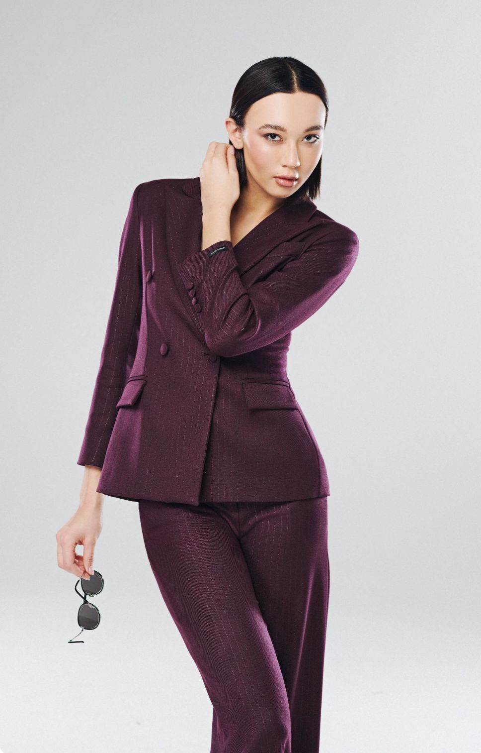 TAILLEUR GESSATO LUREX GIACCA DOPPIOPETTO PANTALONE PALAZZO