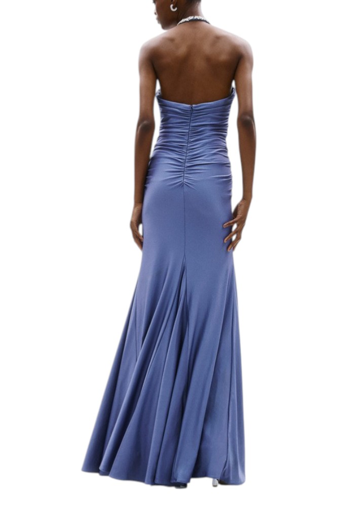 ABITO A SIRENA A FASCIA CON AGGRAPPATURE IMPREZIOSITO DA COLLARINO DI PIETRE