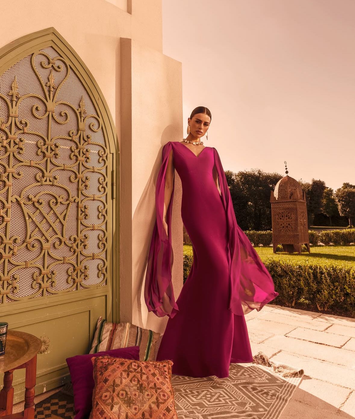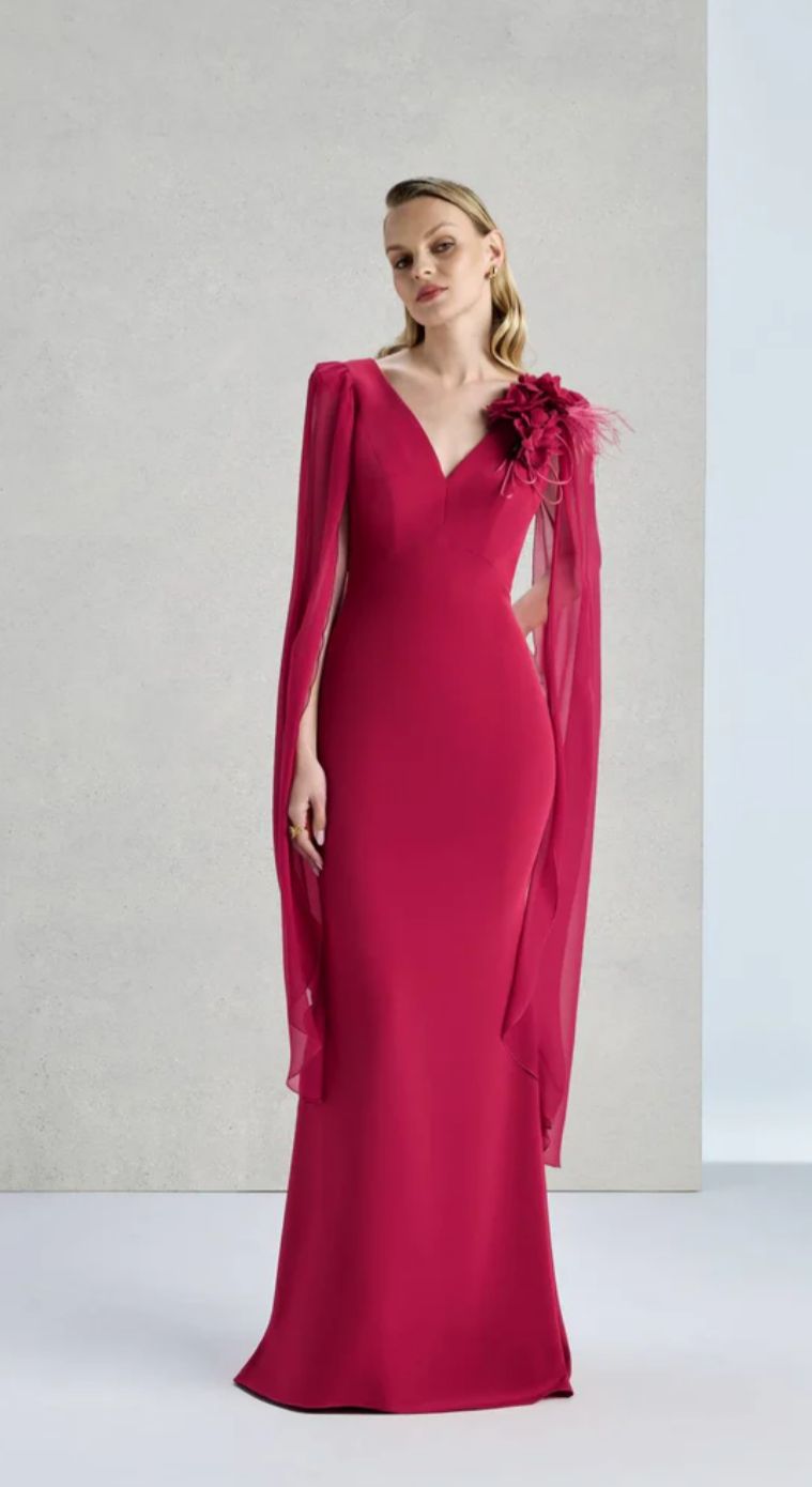 ABITO LUNGO SCOLLO A V CON MANICHE APERTE IN CHIFFON