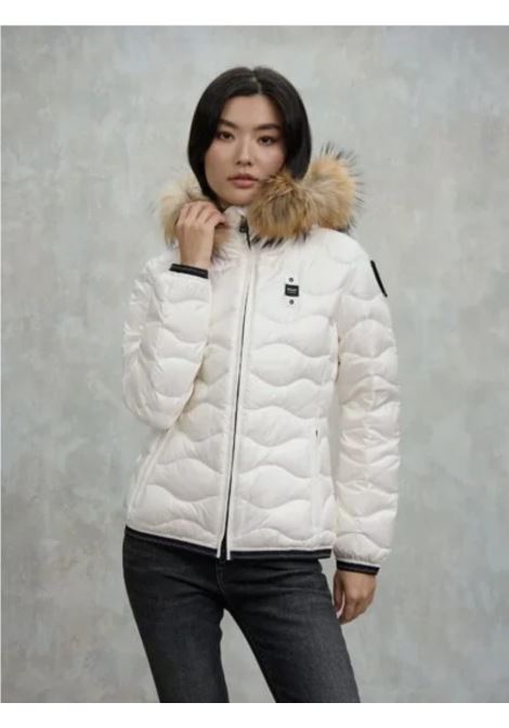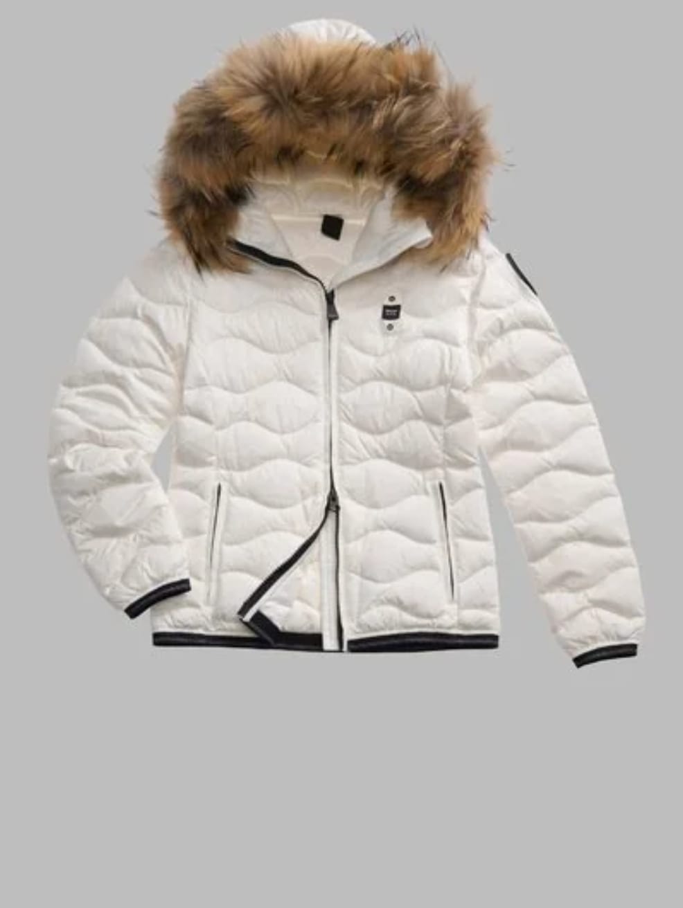 PIUMINO CORTO TRAPUNTATO A ONDA CON CAPPUCCIO E PELLICCIA