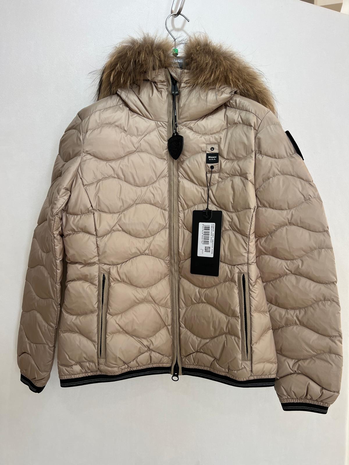 PIUMINO CORTO TRAPUNTATO A ONDA CON CAPPUCCIO E PELLICCIA