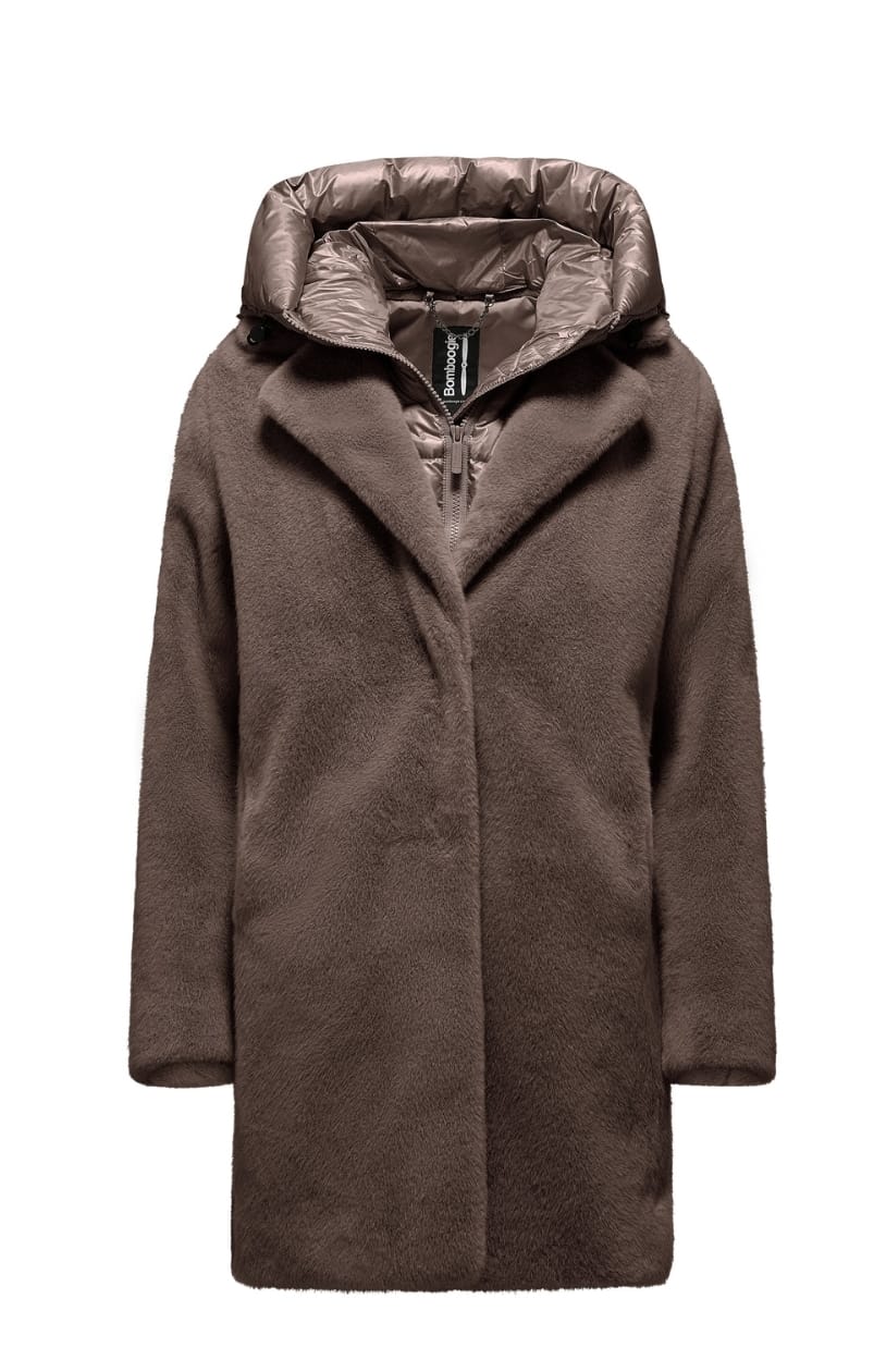 GIACCONE IN ECOPELLICCIA CAPPUCCIO IN PIUMINO TRAPUNTATO