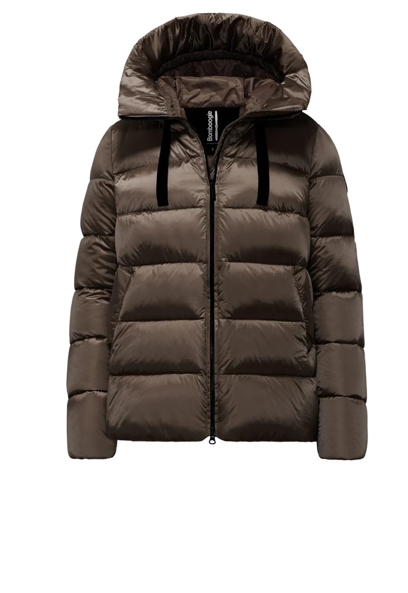 PIUMINO TRPUNTATO IN NYLON LUCIDO CON CAPPUCCIO