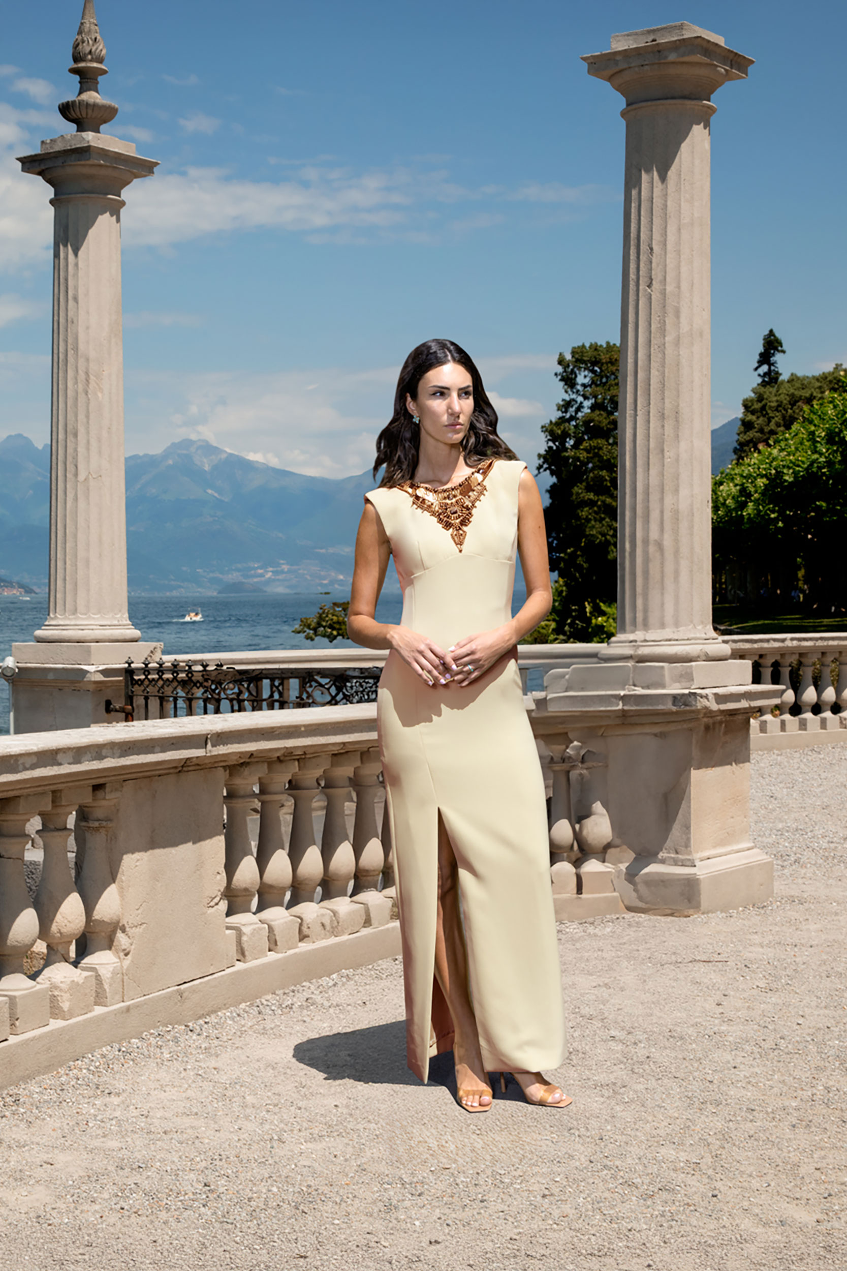ABITO LONGHETTE IN CREPE CON COLLANA GIOIELLO