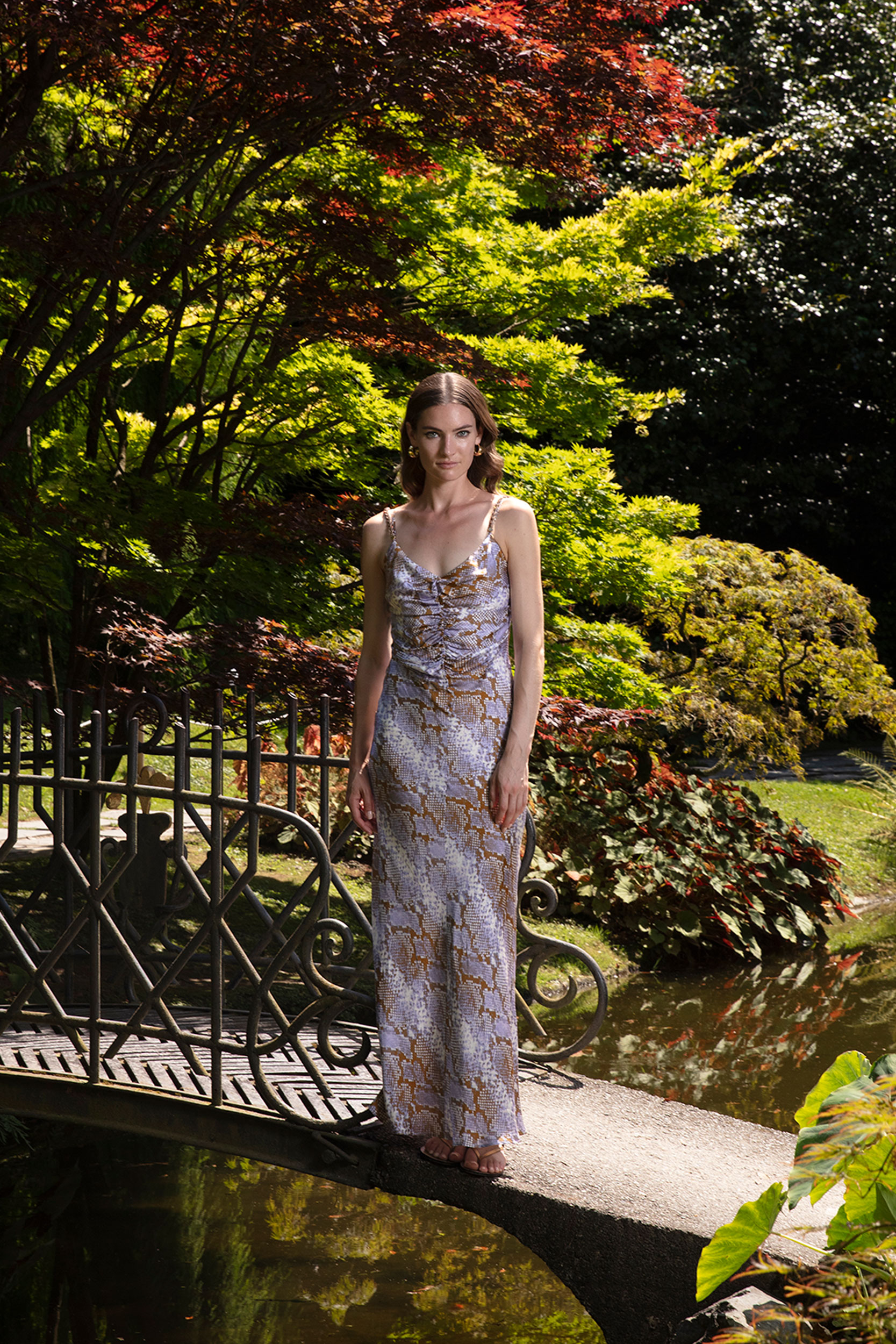 ABITO LUNGO IN SATEN FANTASIA CON BRETELLA STRASS