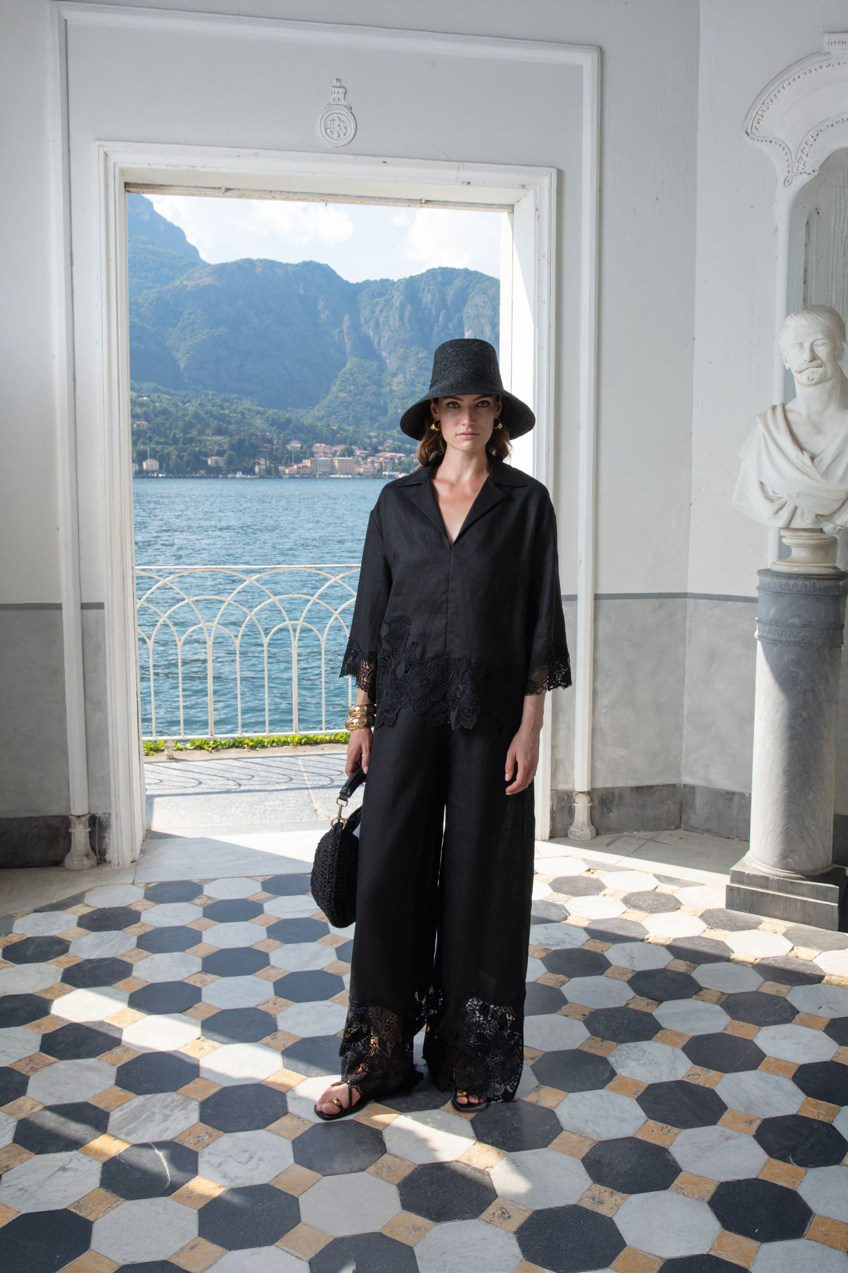 CAMICIA SCOLLO A V CON PARTI IN MACRAME'