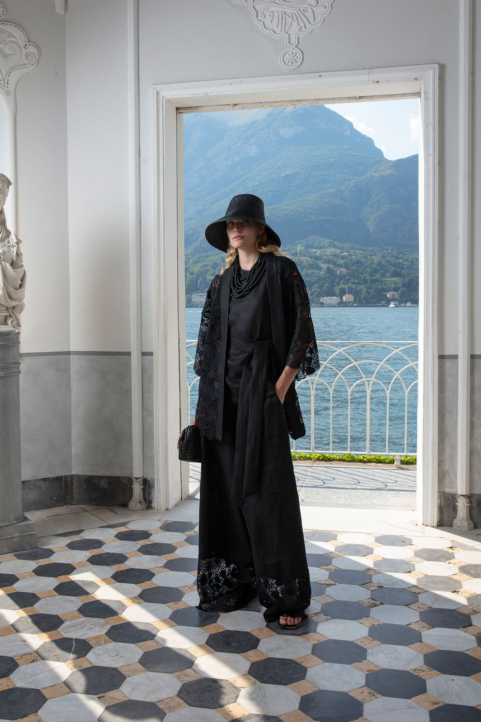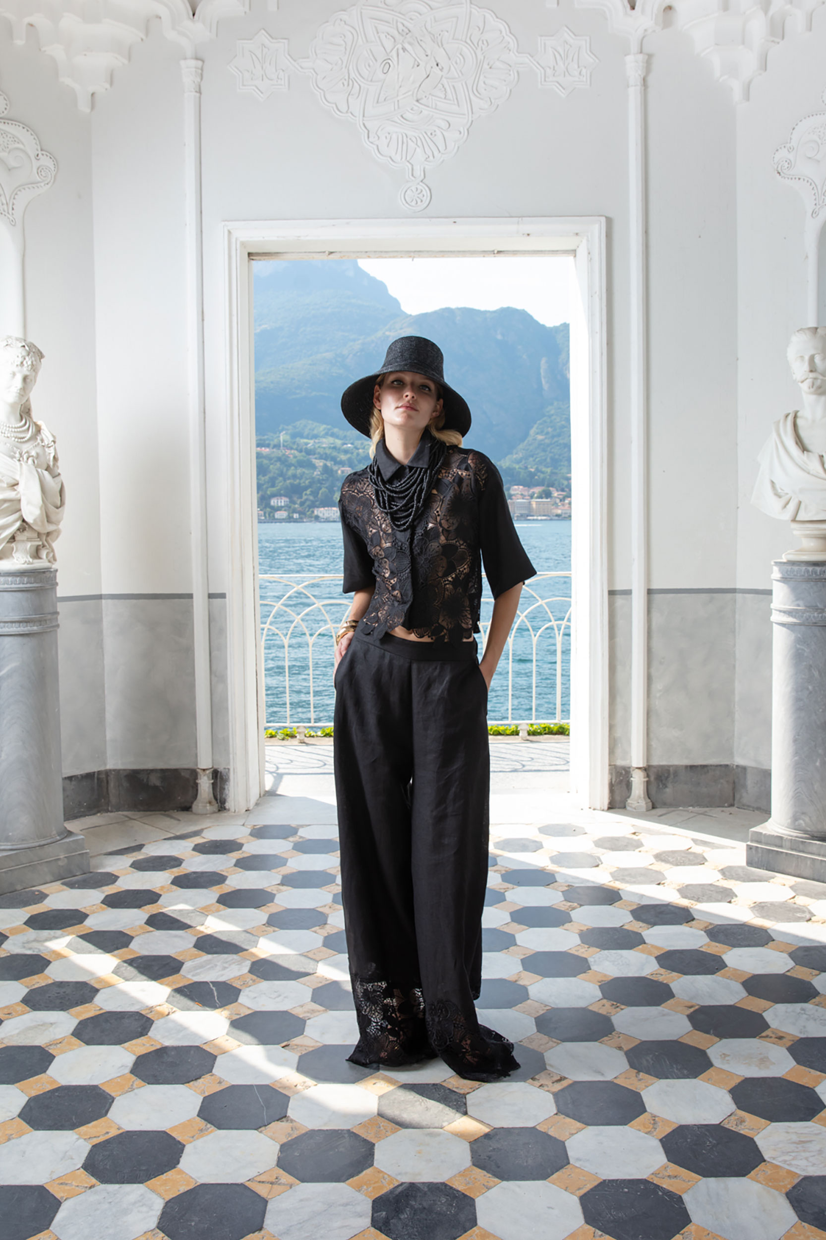 PANTALONE IN LINO CON FASCIONE IN MACRAME'