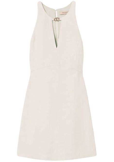 ABITO TUTA MANICA 3/4 CON PIUME E STRASS SCOLLO A V AVANTI E SULLA SCHIENA