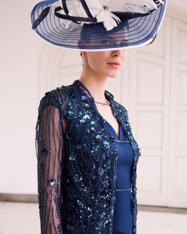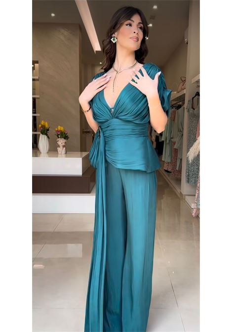 COMPLETO 3PZ IN CREPE SATINATO GIACCA PREZIOSA TOP MEZZA MANICA E PANTALONE PALAZZO