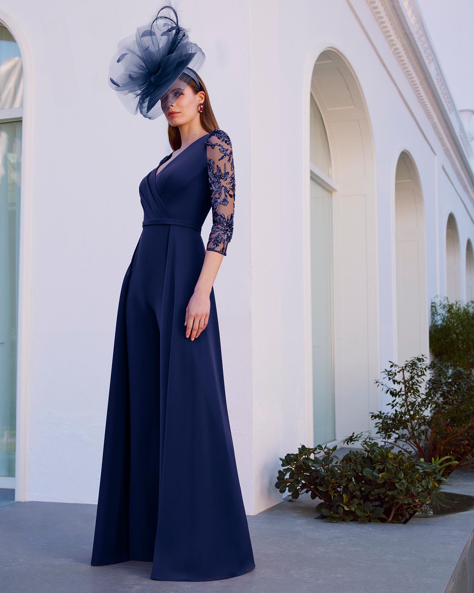 TUTA PALAZZO IN CREPE MANICA 3/4 RICAMATA