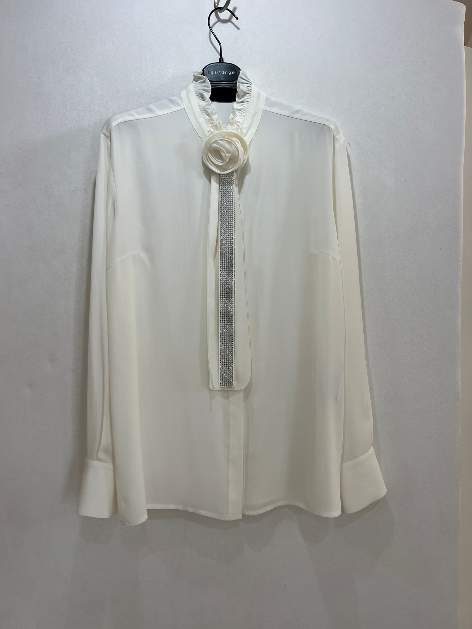 CAMICIA COREANA CON ROUCHES ROSA E BANDA STRASS