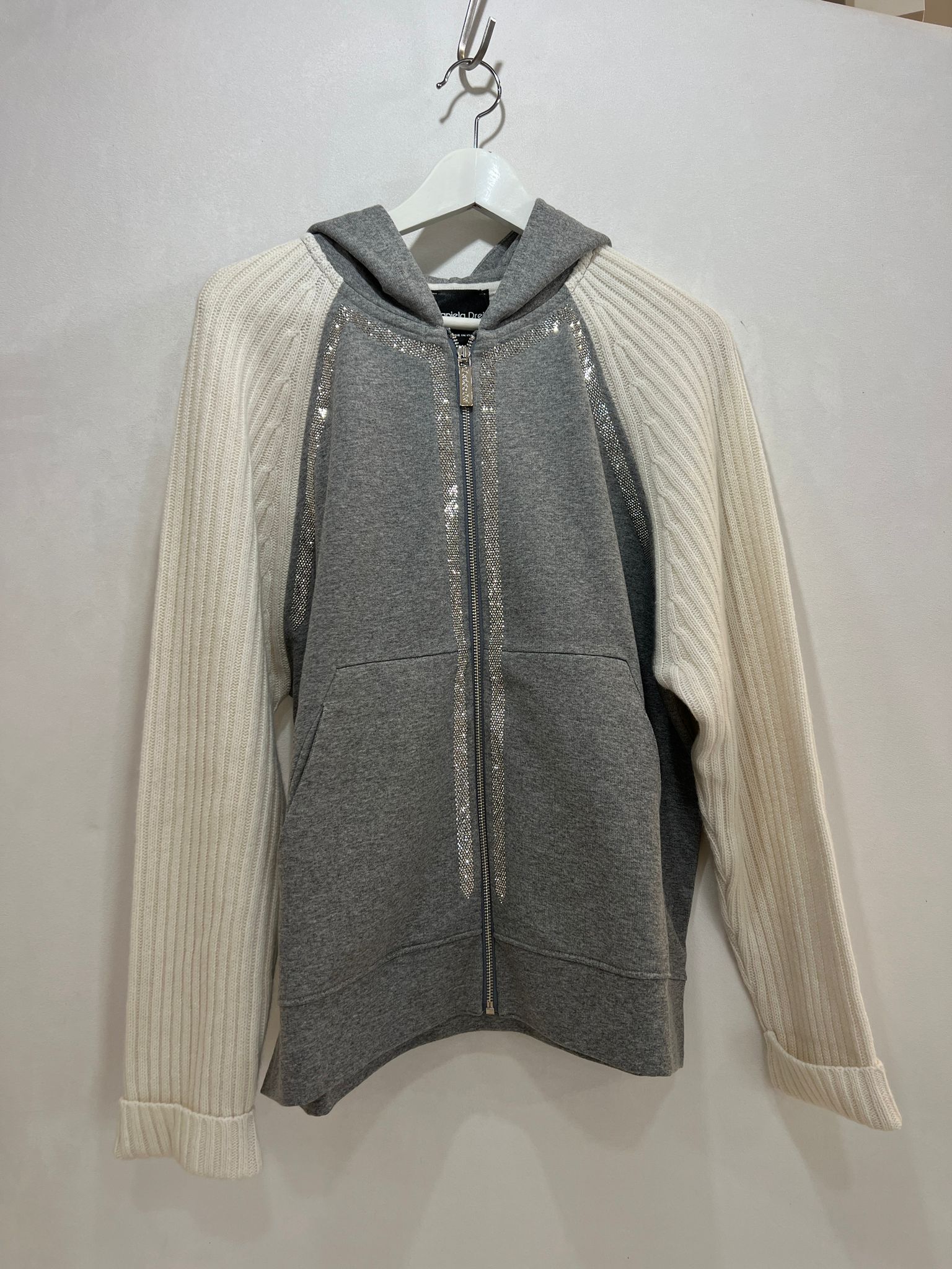 FELPA BICOLORE IN DOPPIO TESSUTO CON STRASS