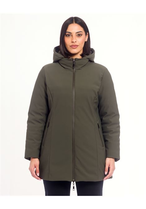GIUBBINO IN TESSUTO SCUBA CON CAPPUCCIO PIUMINO STACCABILE