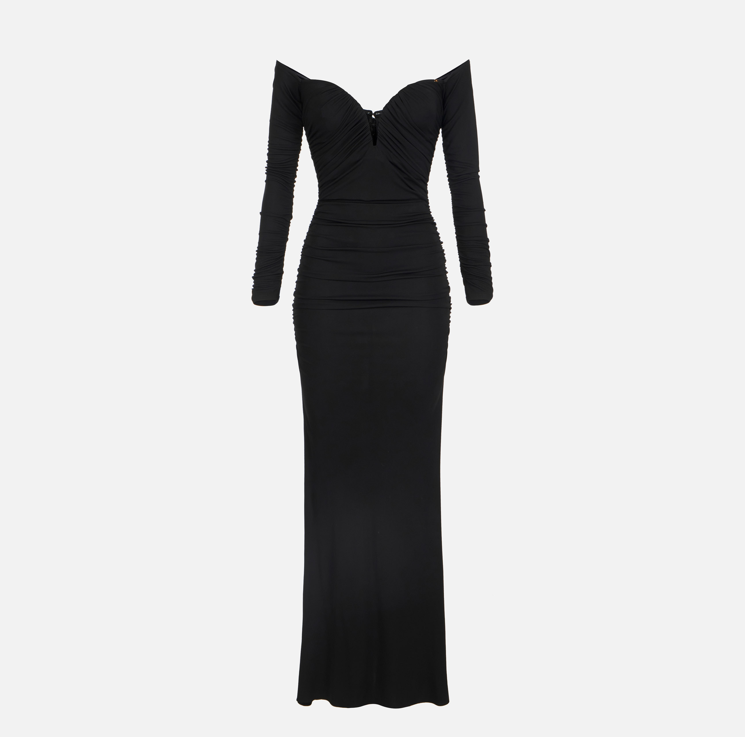ABITO LUNGO IN JERSEY SCOLLO CUORE MANICA LUNGA MODELLO ADERENTE DRAPPEGIATO