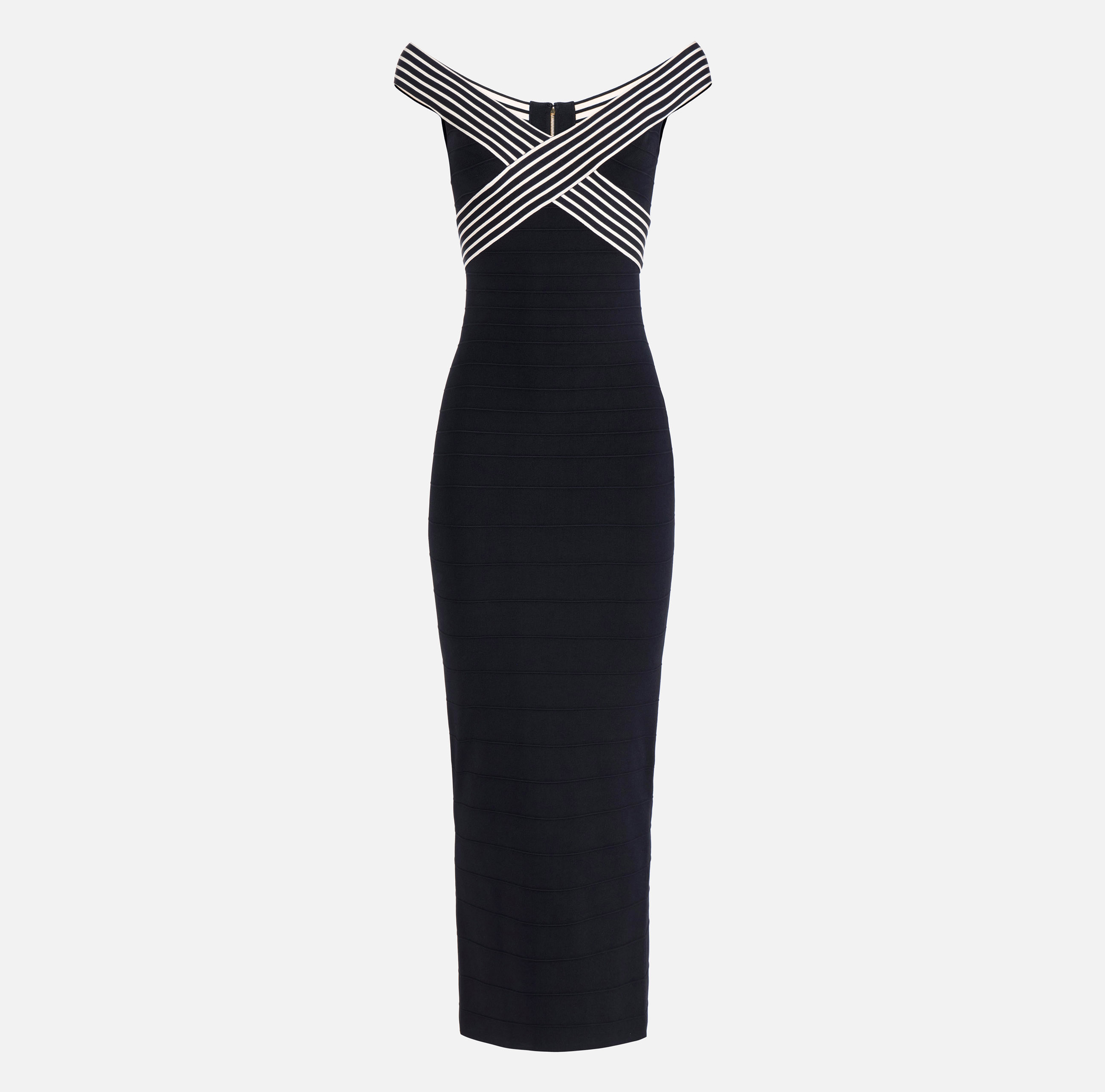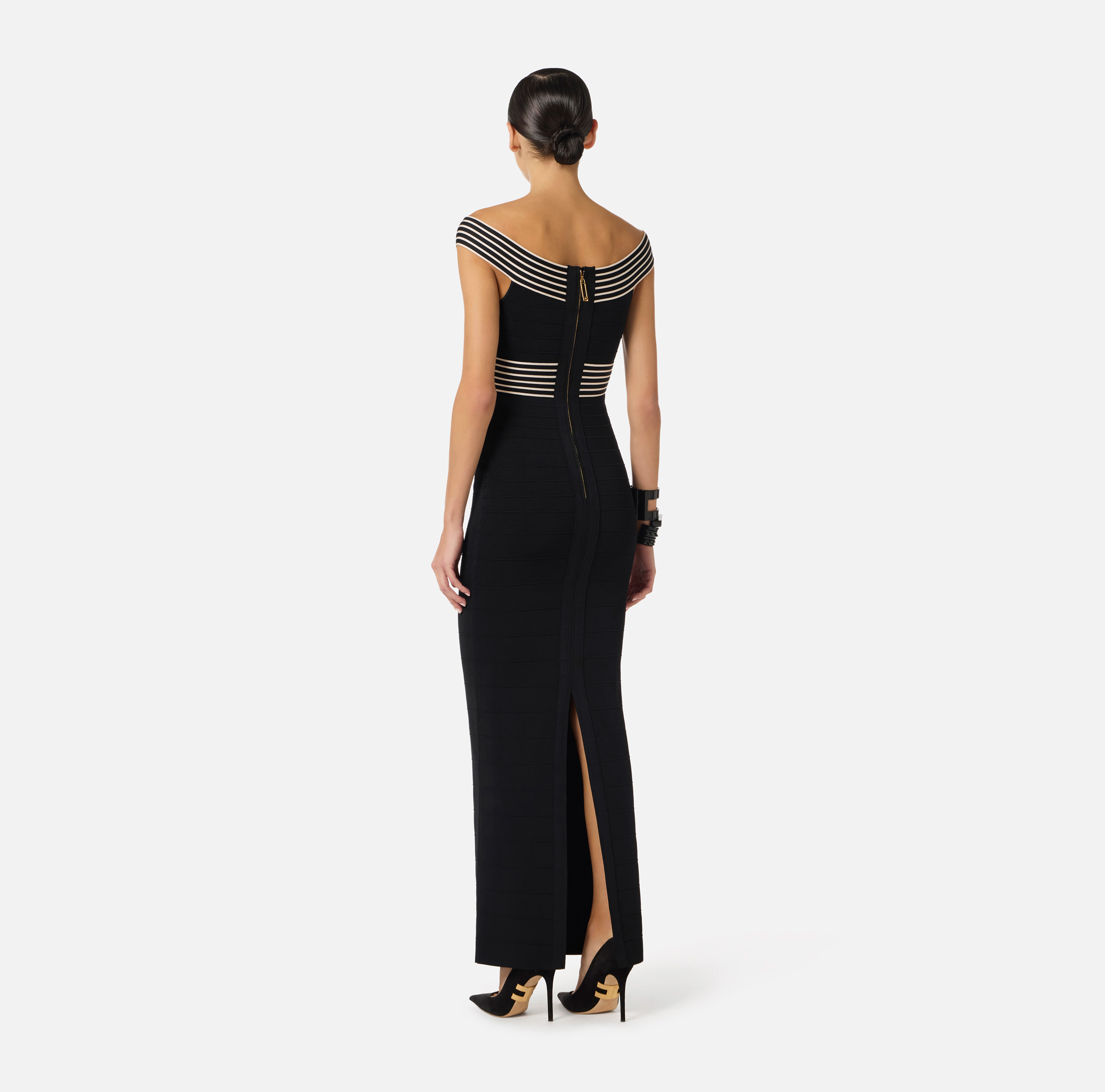 ABITO LUNGO IN MAGLIA ADERENTE CON BANDE A CONTRASTO