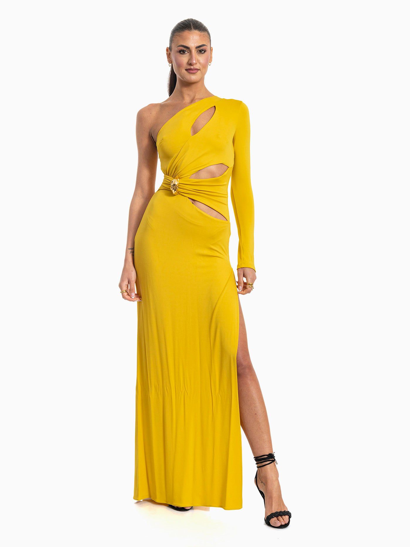 ABITO LUNGO MONOSPALLA CON DETTAGLI GIOIELLO VESTIBILITA' ADERENTE
