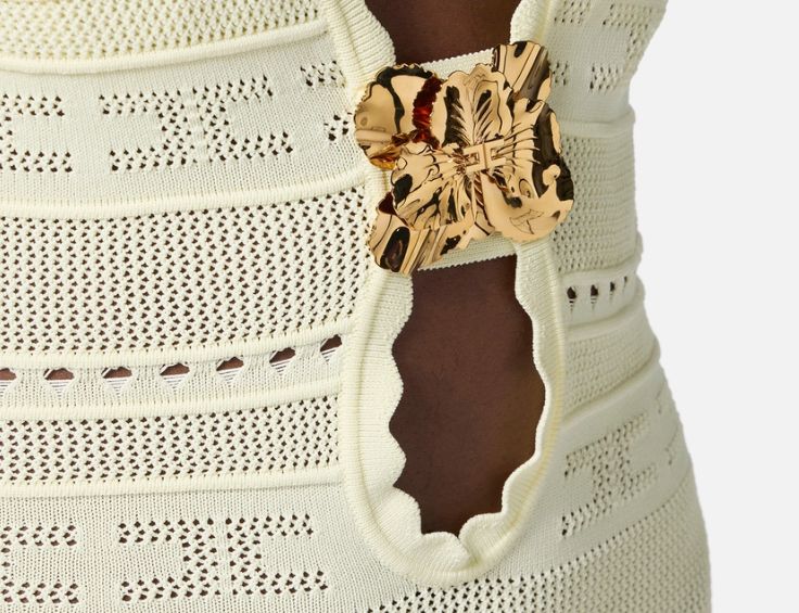 ABITO SCOLLO A V TRAFORATO CON FIORE GOLD
