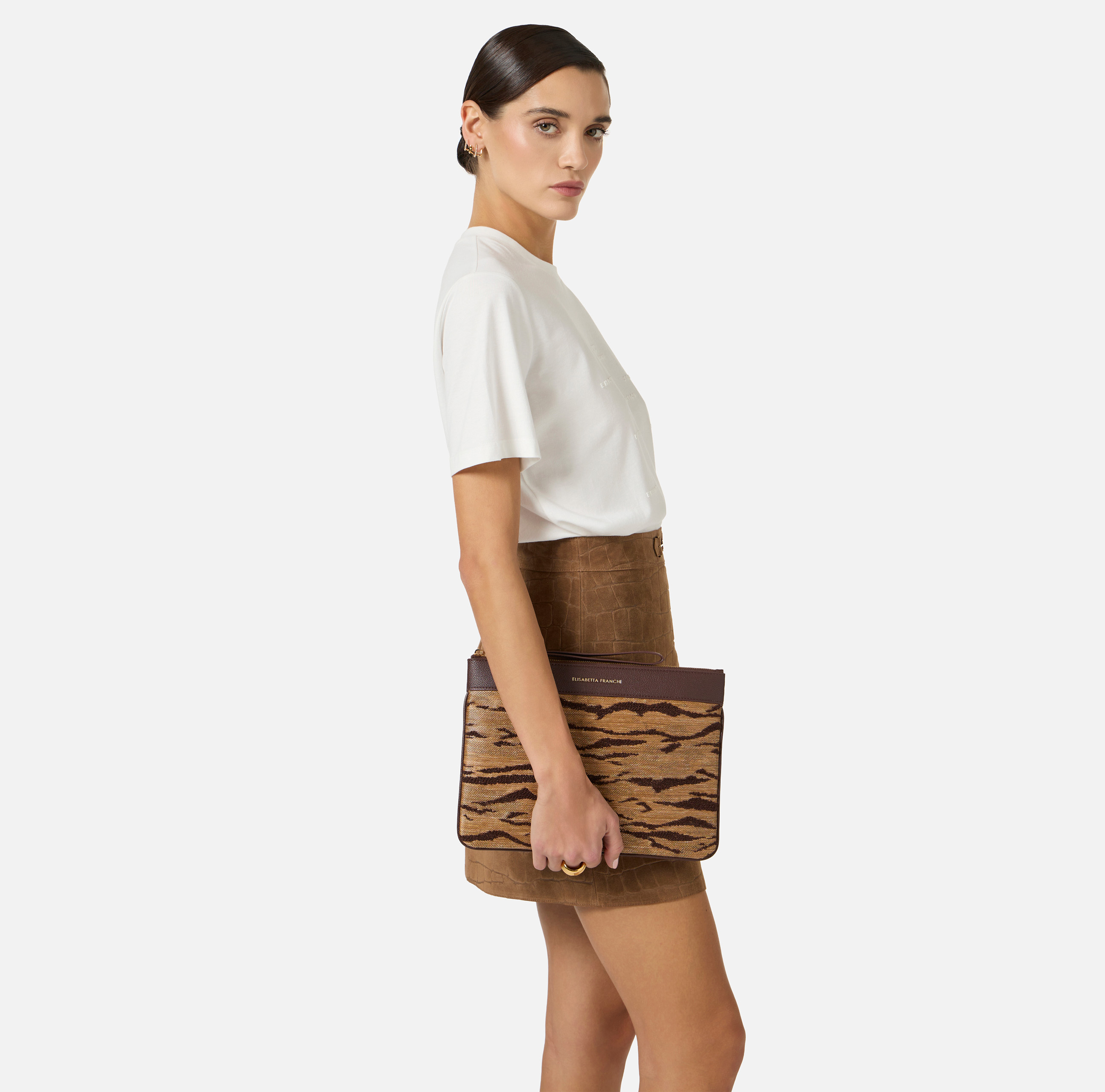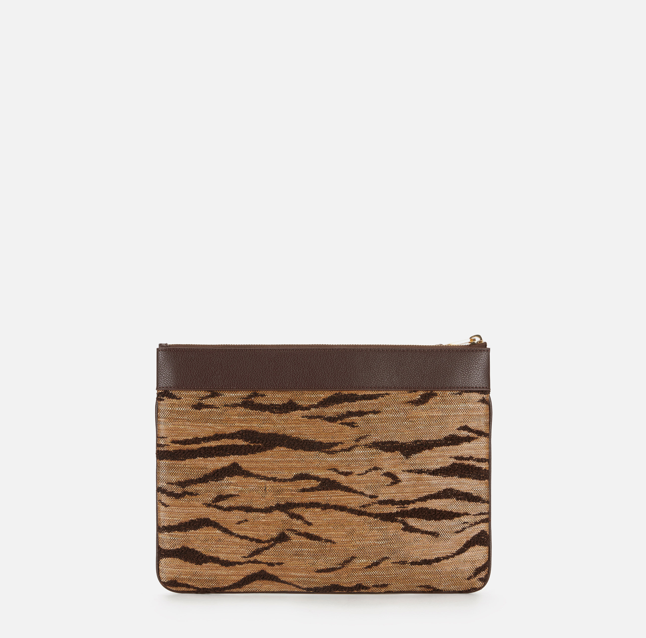 BORSA A BUSTINA CON ZIP STAMPA TIGRE