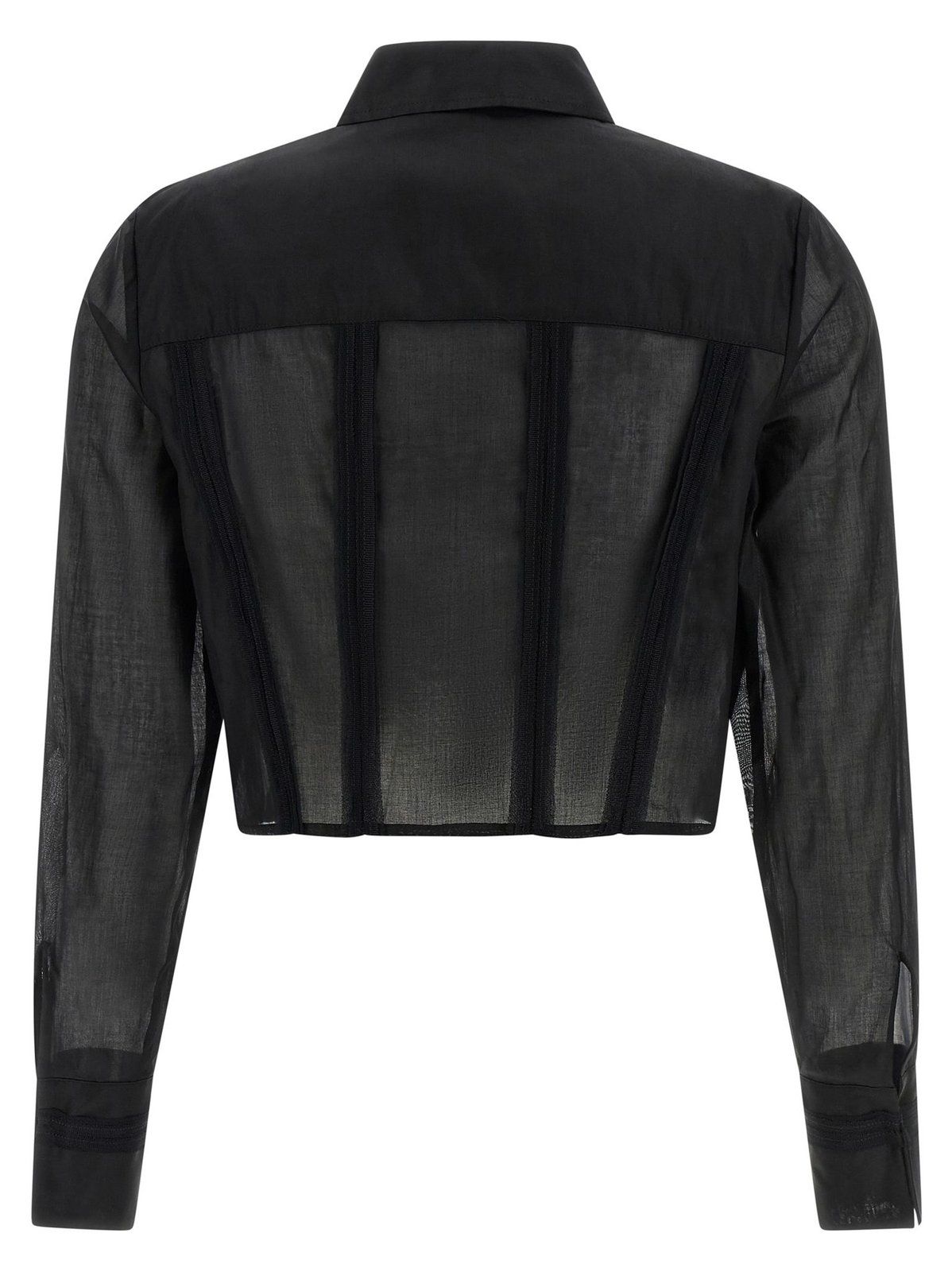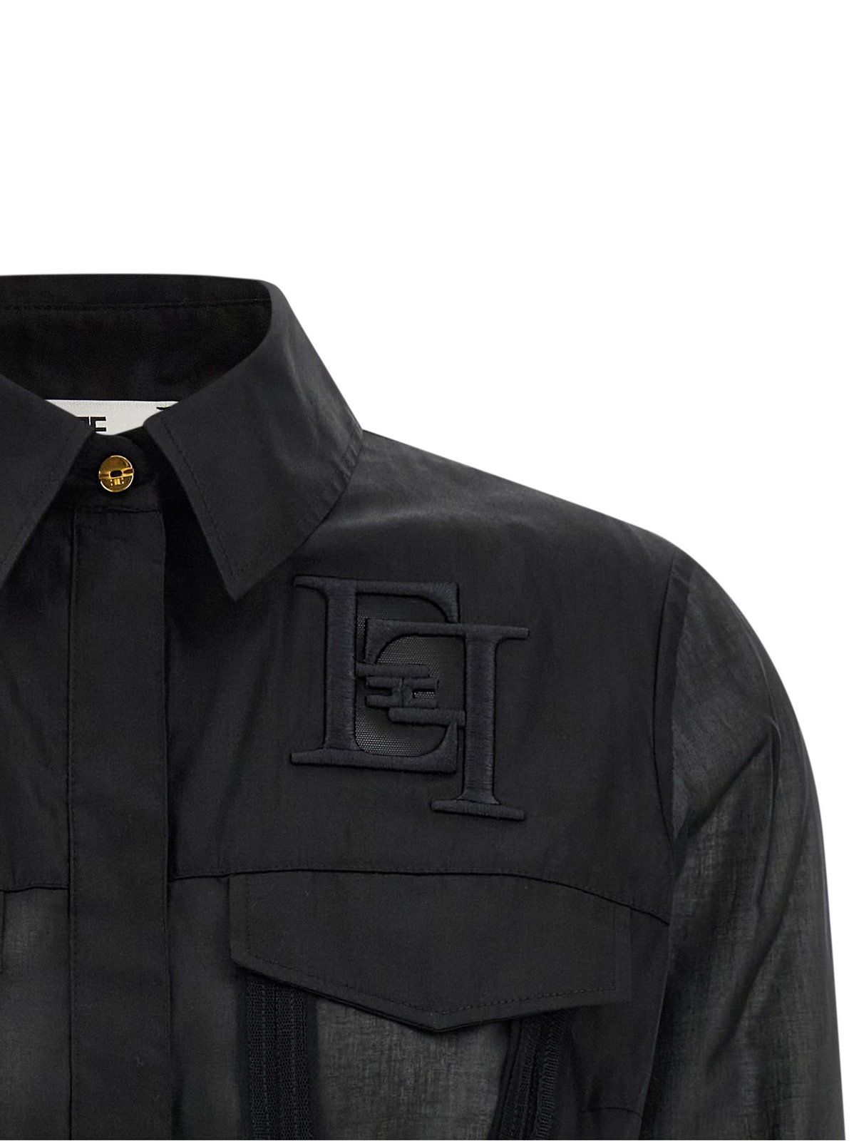 CAMICIA CROP IN COTONE CON PATTE E DETTAGLIO LOGO RICAMATO