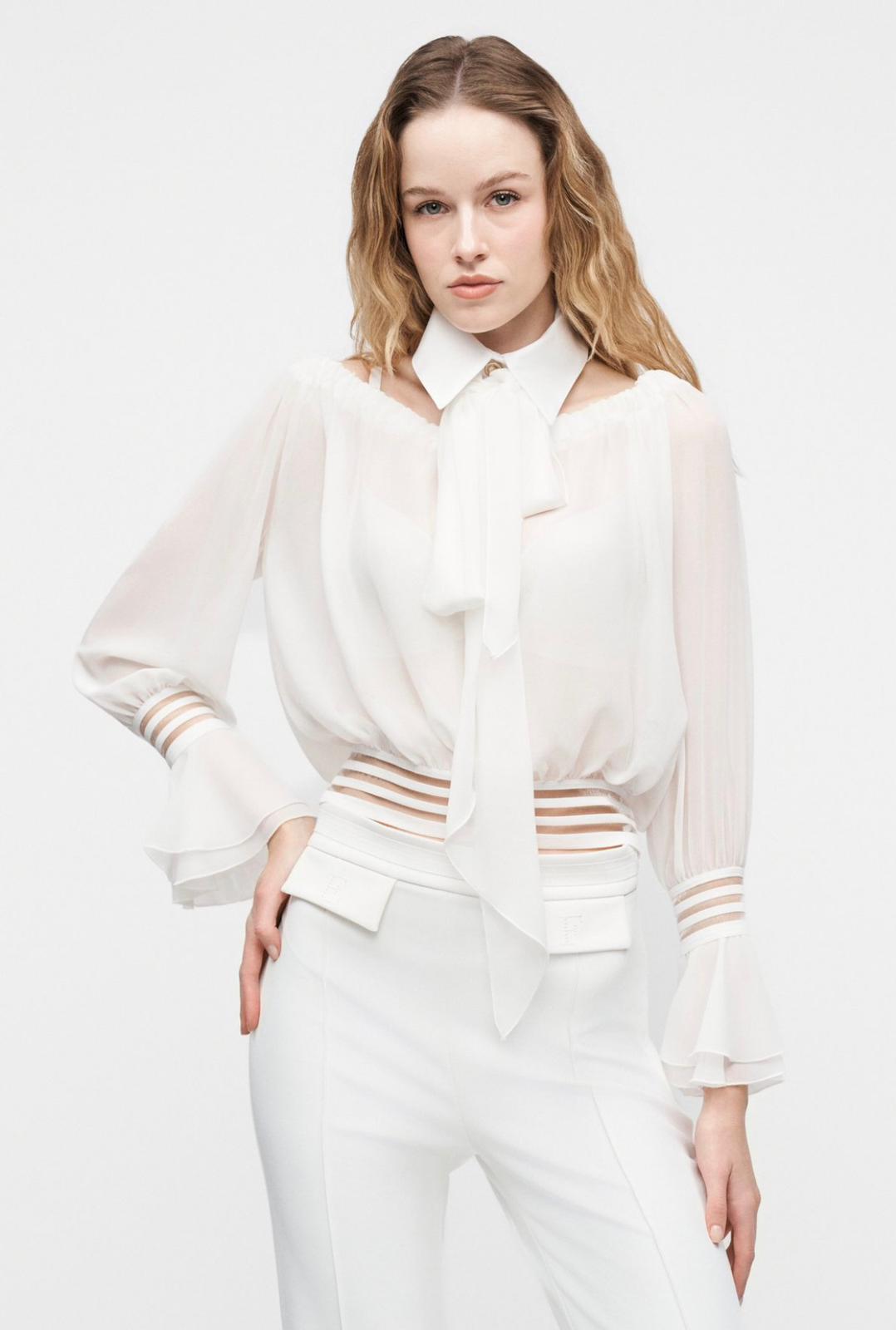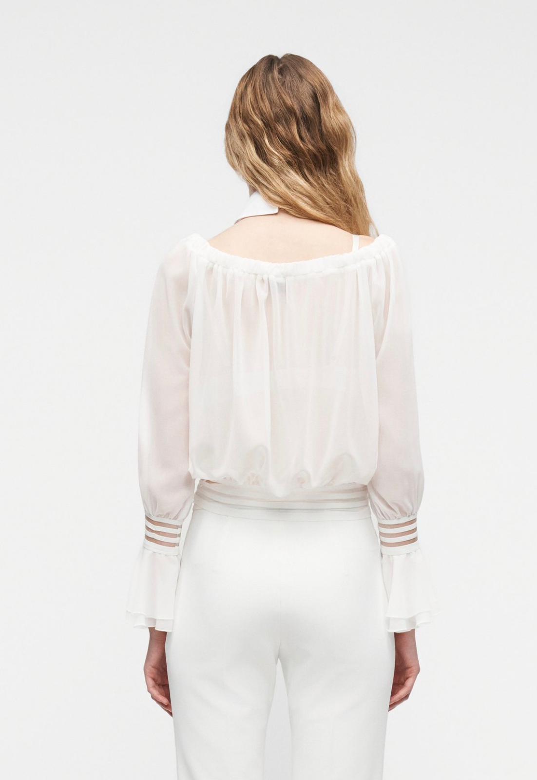 CAMICIA CROP INSERTI TRASPARENTI SCOLLO A BARCA CON COLLETTO E FUSCIACCA