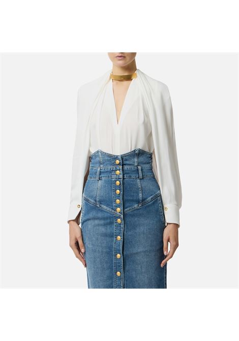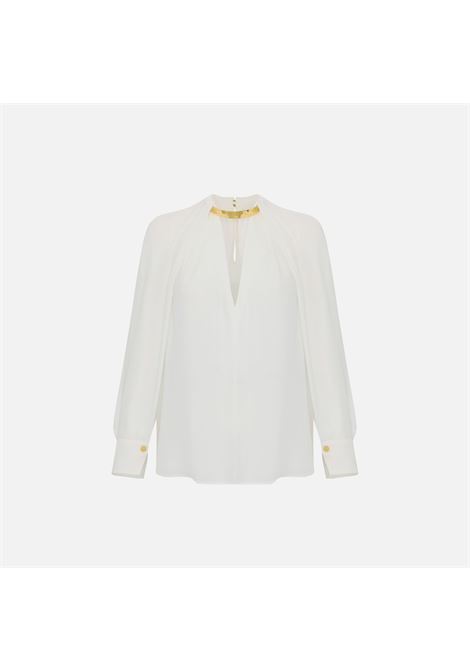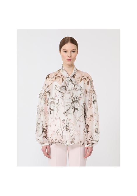 CAMICIA IN GEORGETTE CON DETTAGLI IN CREPE FUSCIACCA AL COLLO E GEMELLI AI POLSI