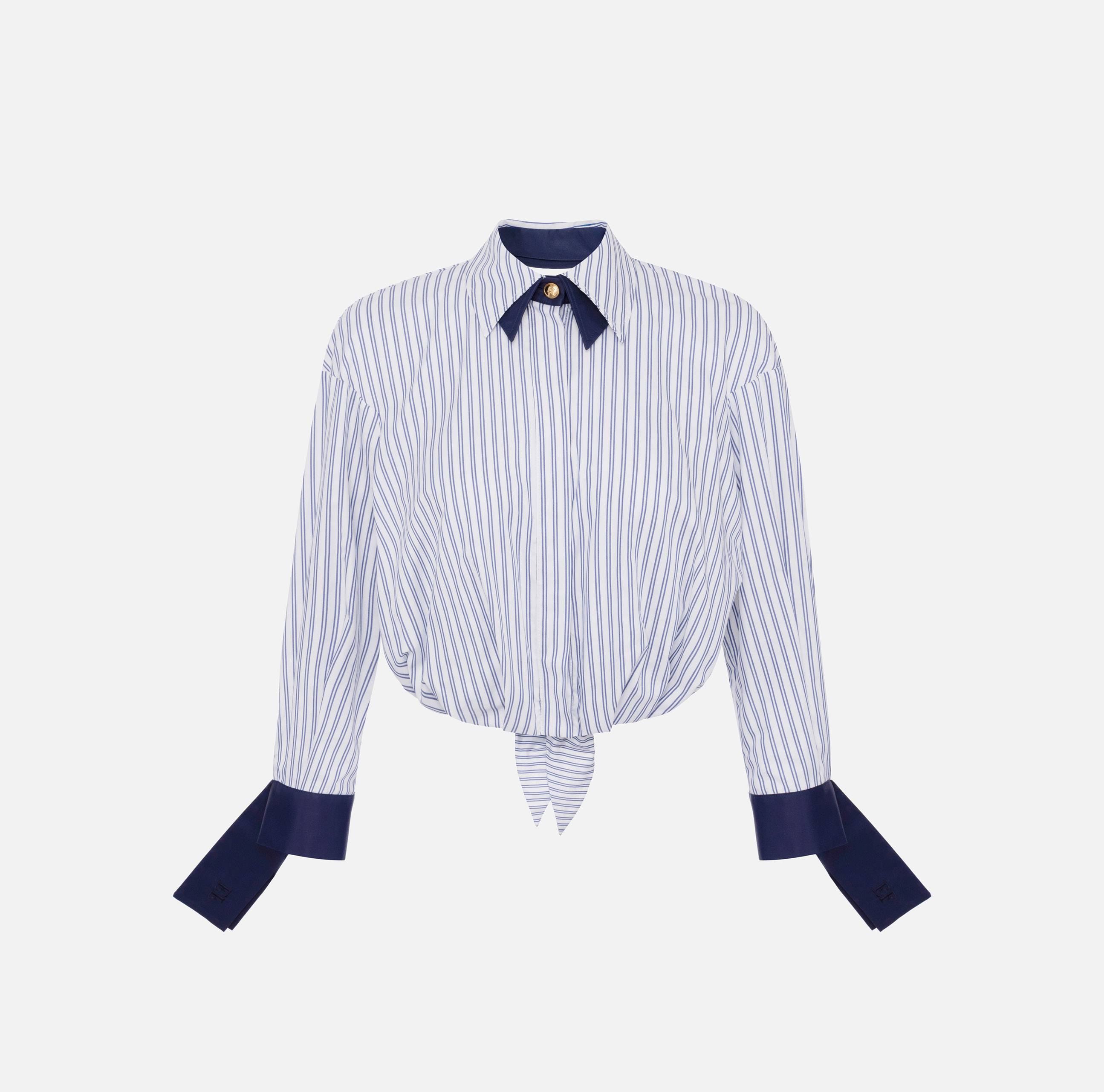 CAMICIA RIGATA CON DOPPIO COLLETTO MANICA 3/4 CON NASTRO NODO SUL RETRO