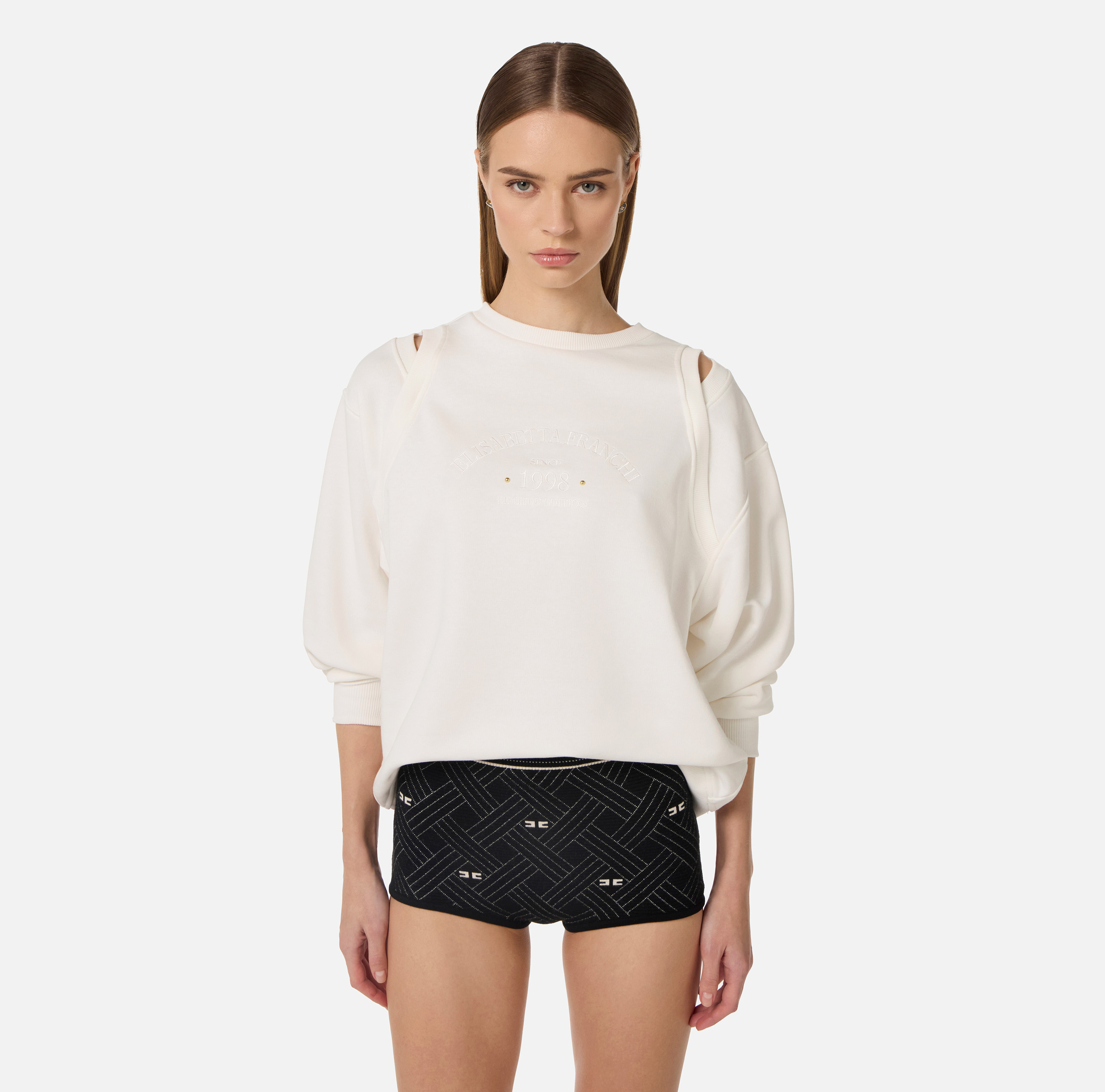 FELPA IN JERSEY CON APERTURE LOGO RICAMATO SUL DAVANTI