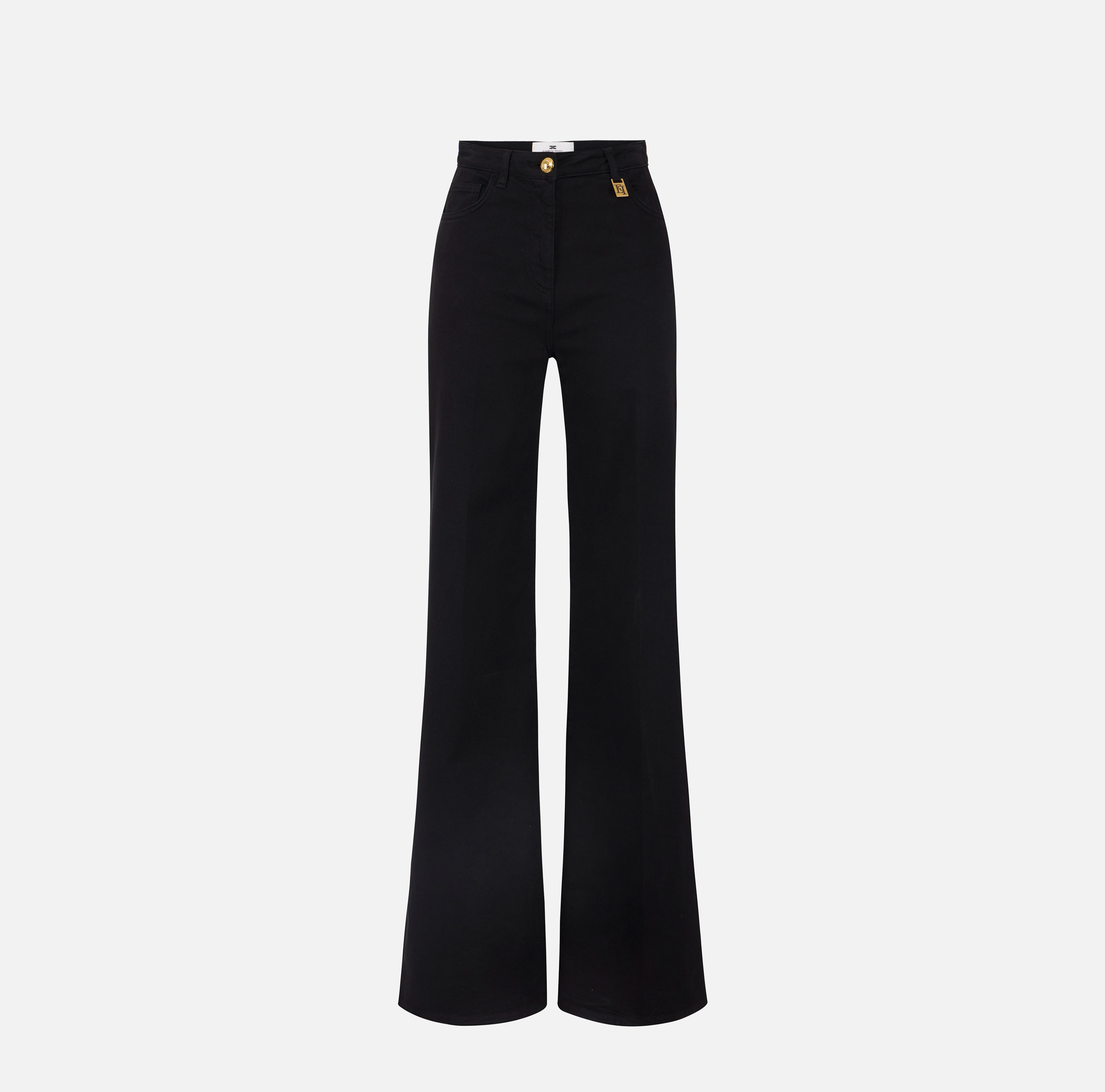 JEANS IN DENIM STRETCH VITA ALTA MODELLO PALAZZO CON BOTTONI CHE DELINEANO I FIANCHI