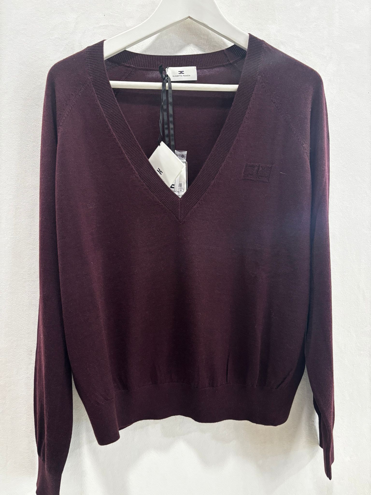 MAGLIA IN FILO SCOLLO A V PROFONDO CON LOGOIN RILIEVO