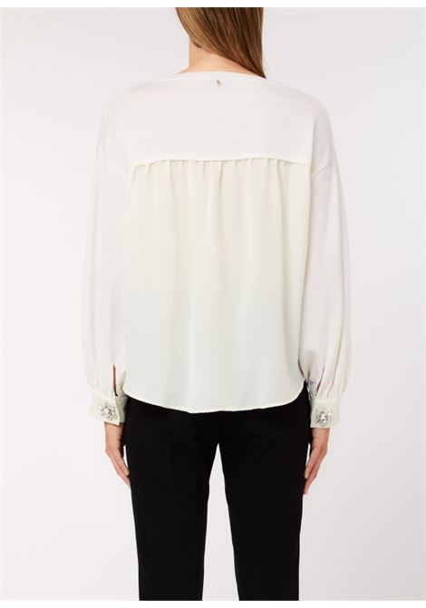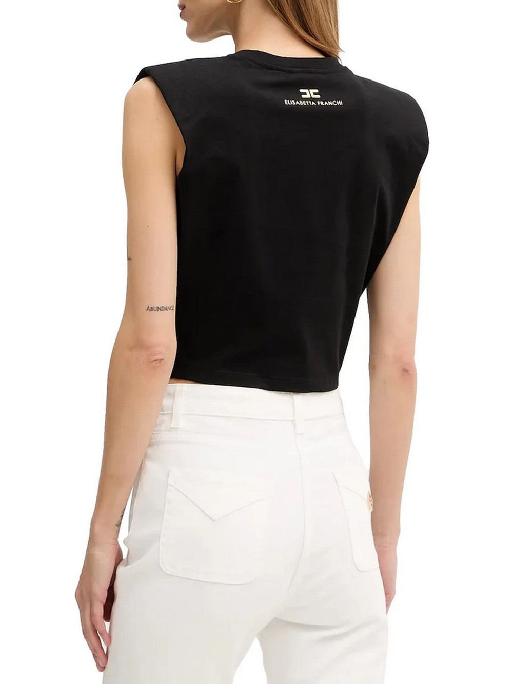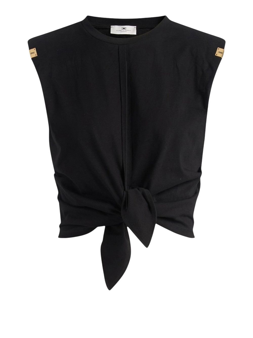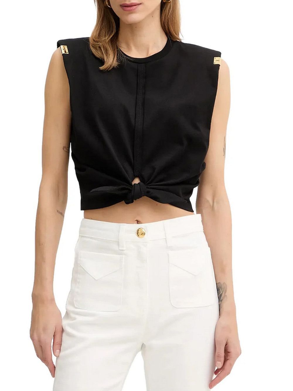 MAGLIA IN JERSEY GIROCOLLO CON SPALLE STRUTTURATE E DETTAGLI ORO NODO FRONTALE