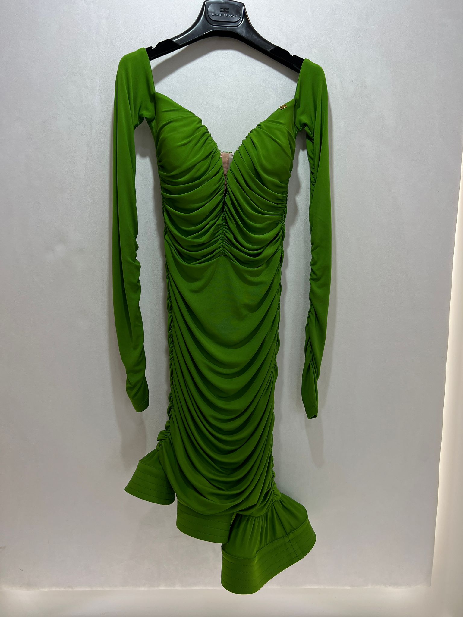 MINI ABITO DRAPPEGGIATO IN JERSEY SCOLLO CUORE CON VOLANT FINALE