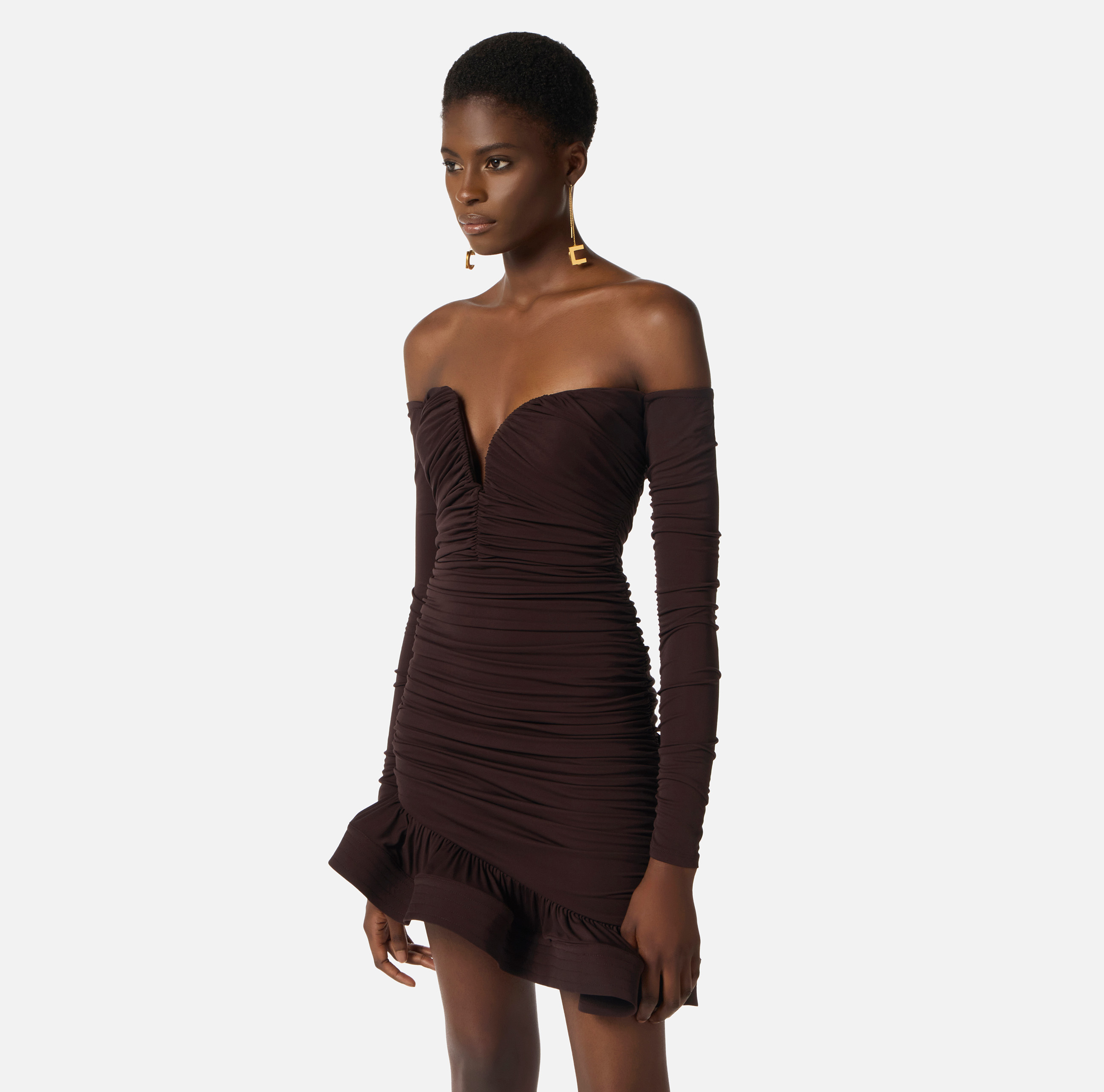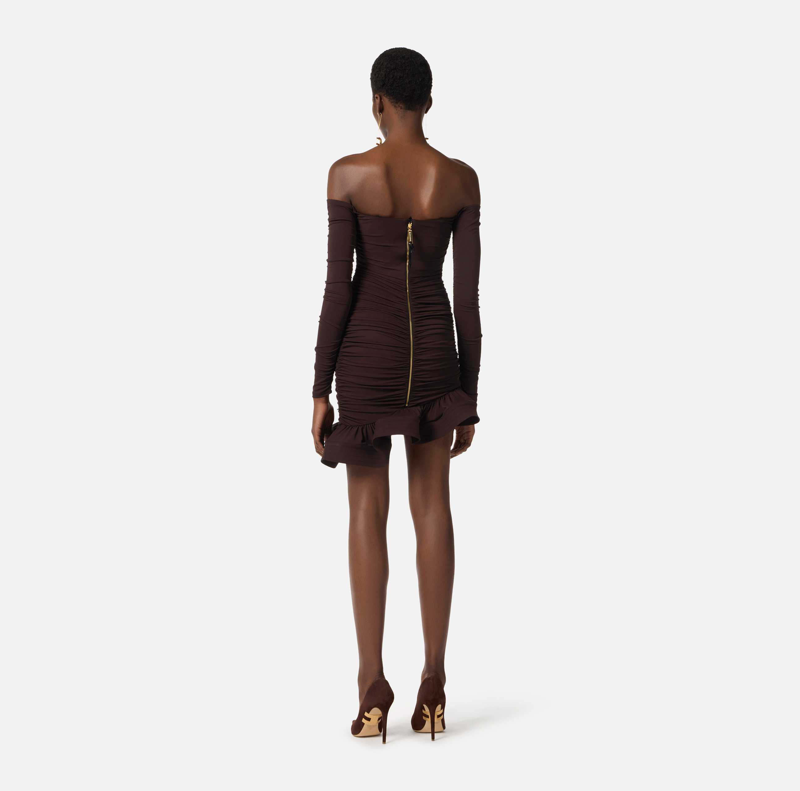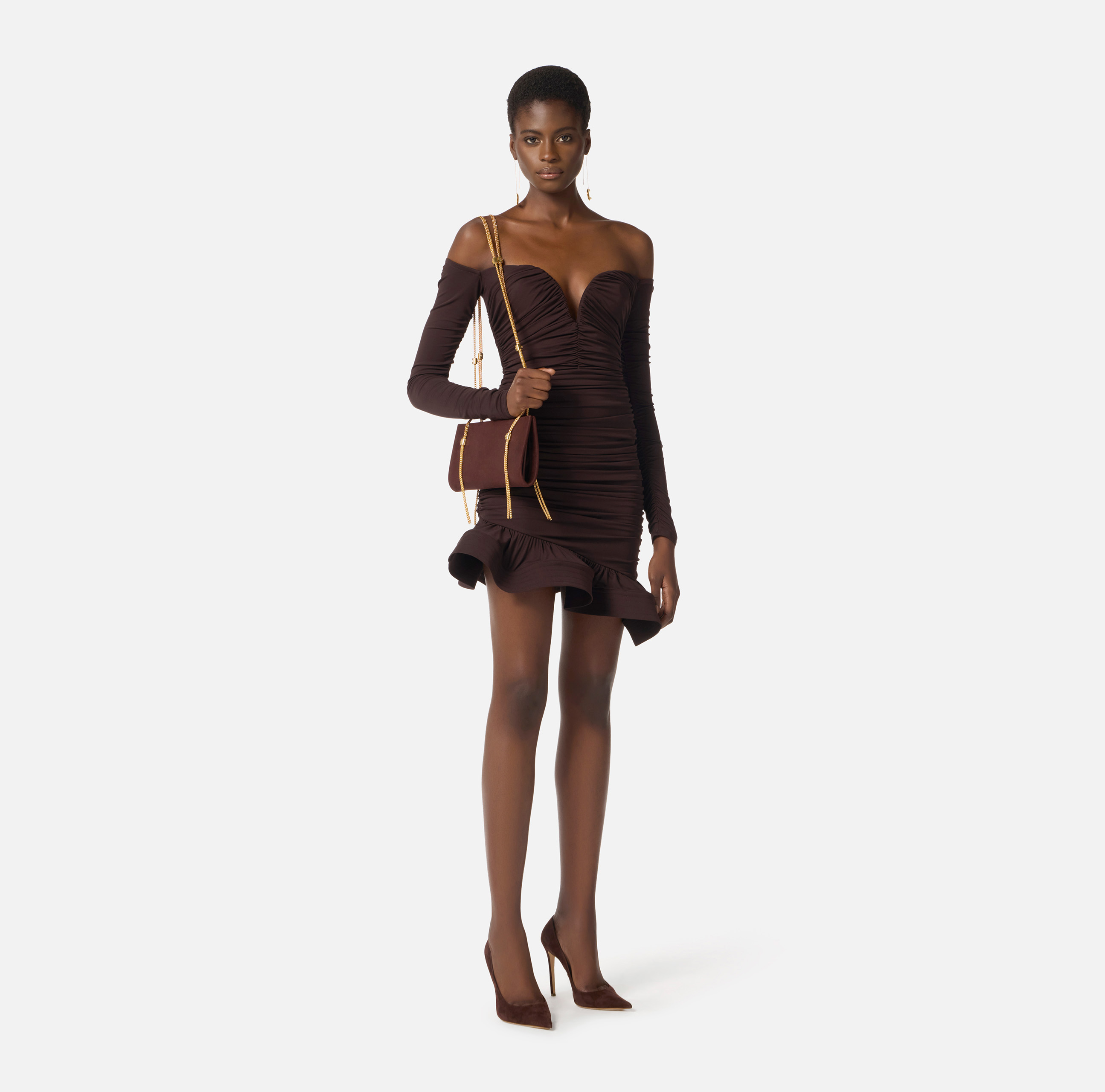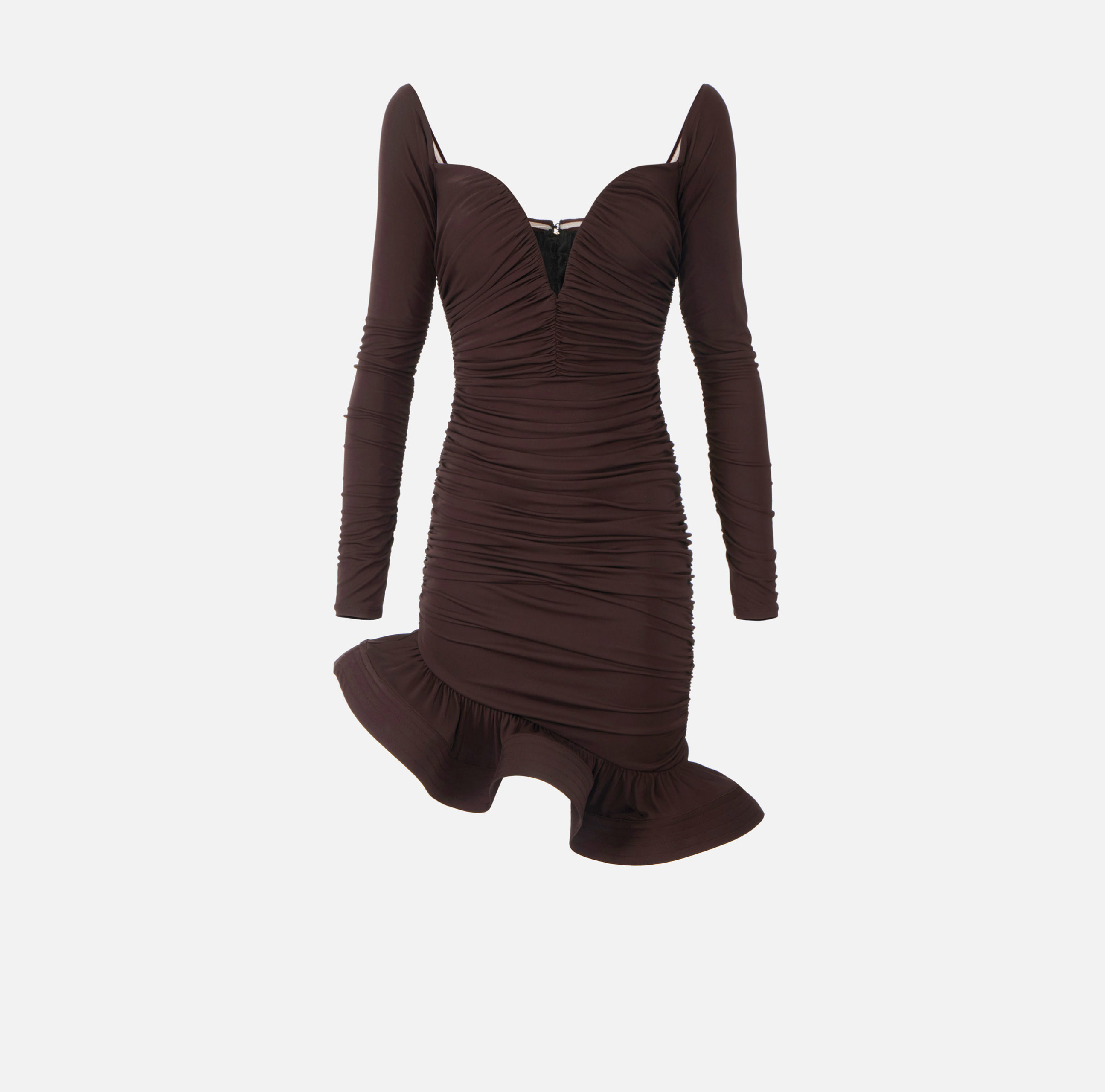 MINI ABITO DRAPPEGGIATO IN JERSEY SCOLLO CUORE CON VOLANT FINALE