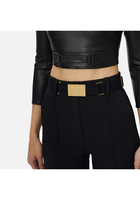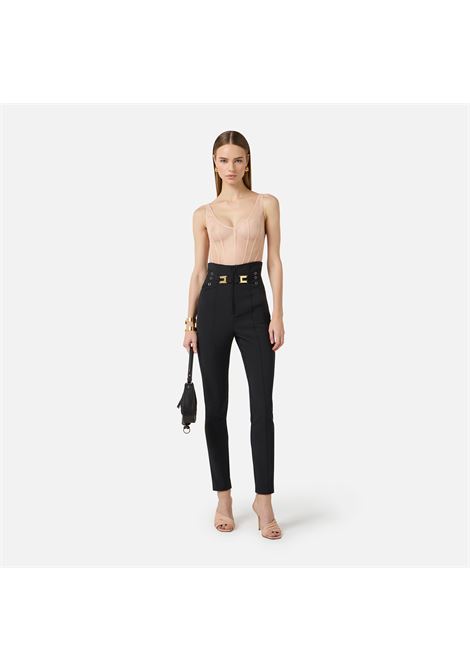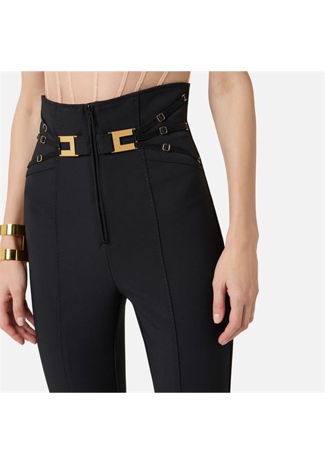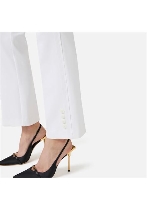 PANTALONE ADERENTE IN DOPPIO CREPE STRETCH CON APERTURA CENTRALE A V E DETTAGLI LOGO