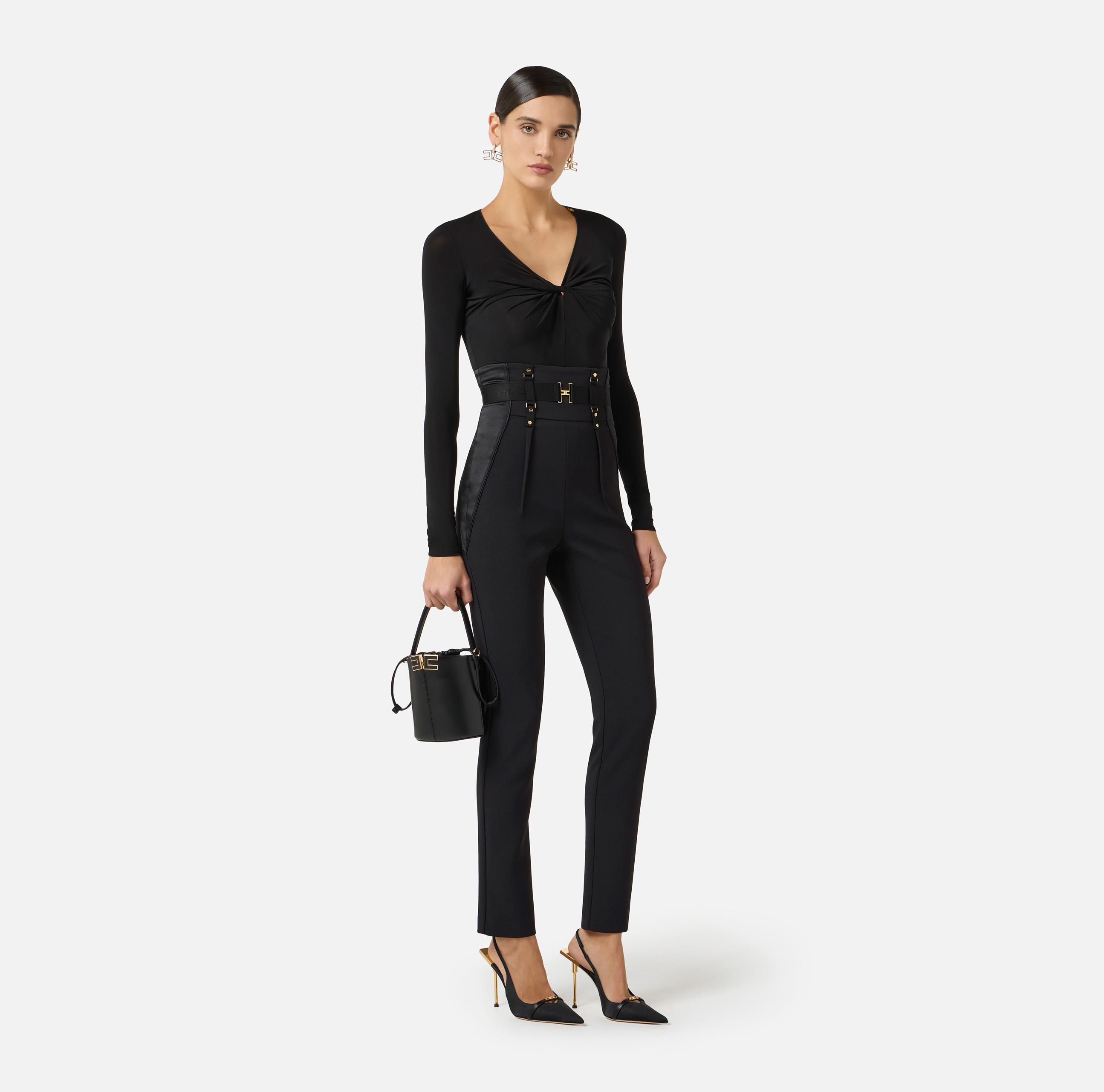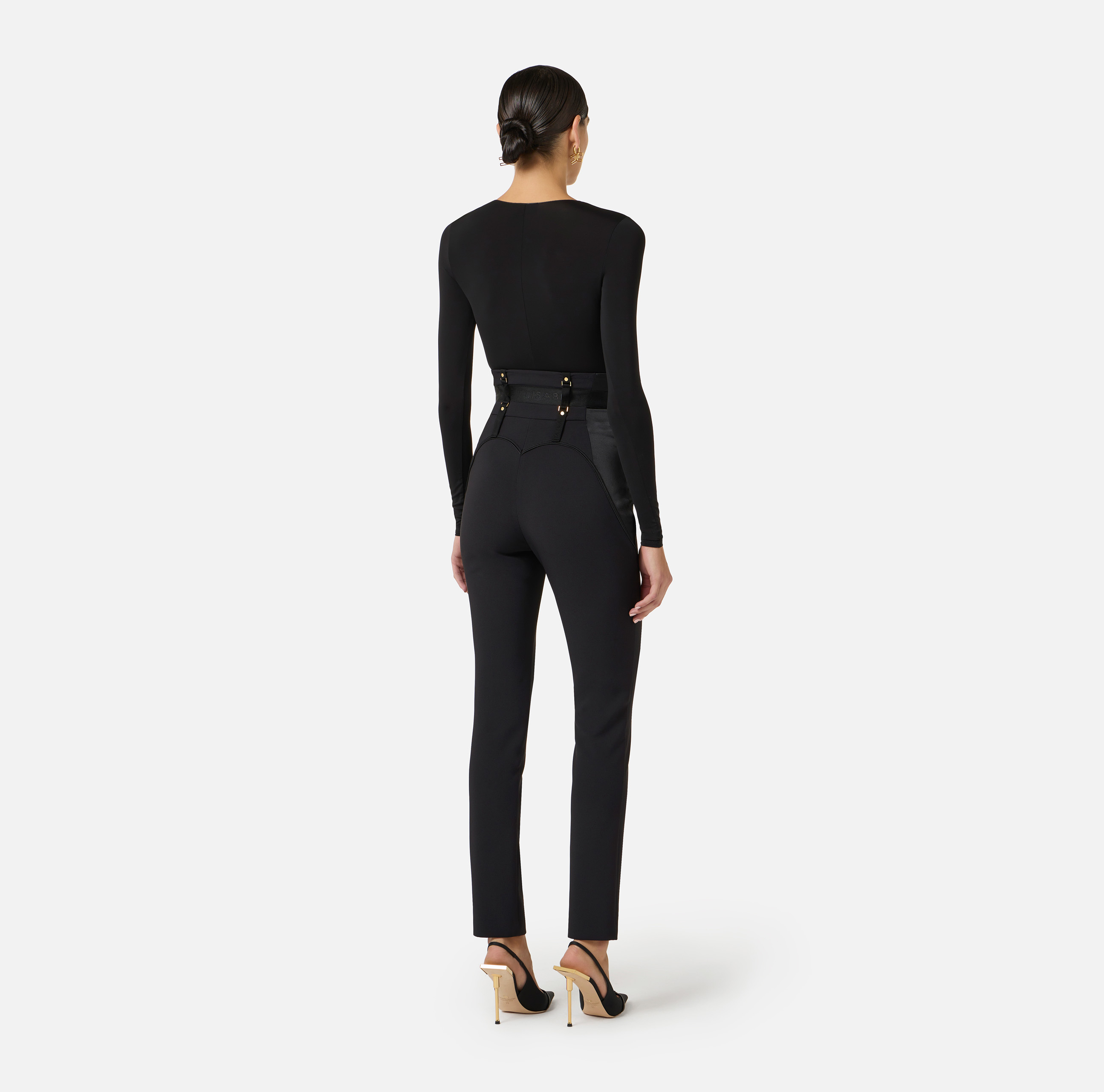 PANTALONE SIGARETTA VITA ALTA IN CREPE E RASO