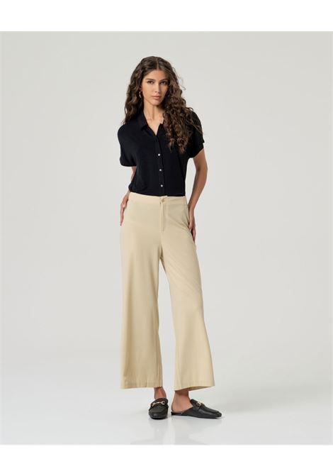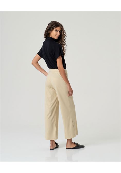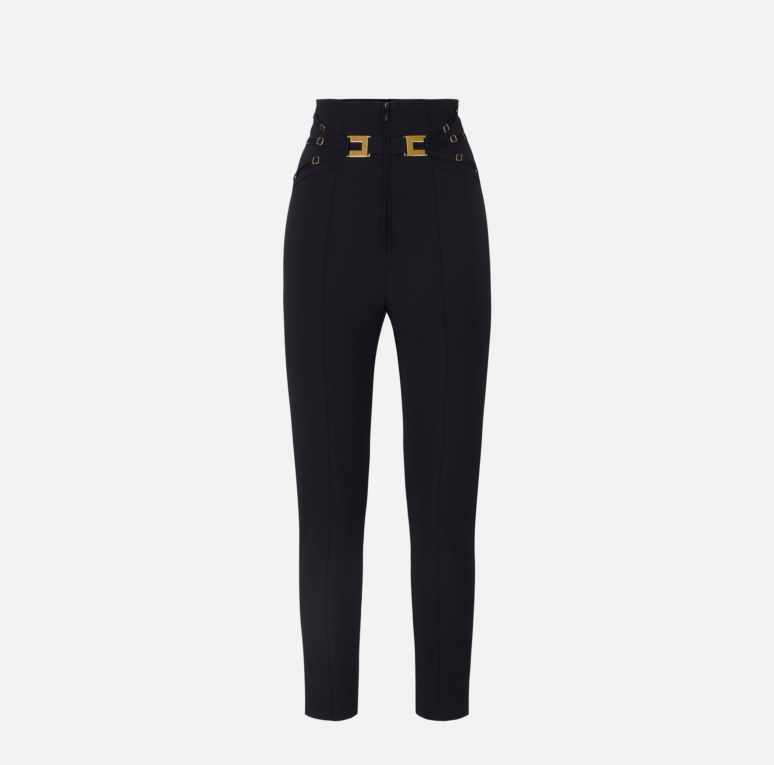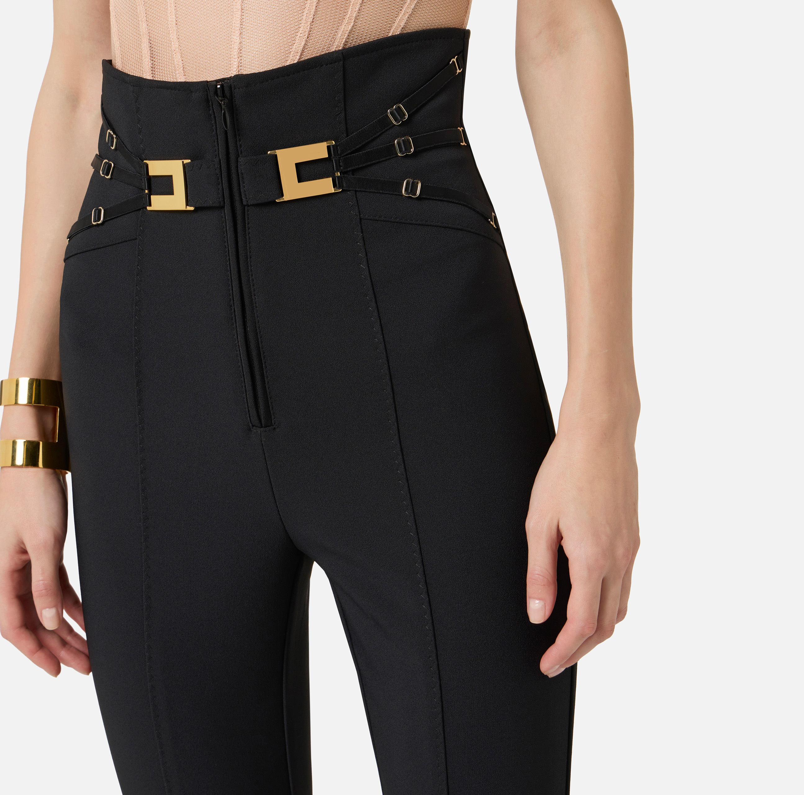 PANTALONE VITA ALTA IN DOPPIO CREPE STRETCH CON DETTAGLI LINGERIE E LOGO ORO