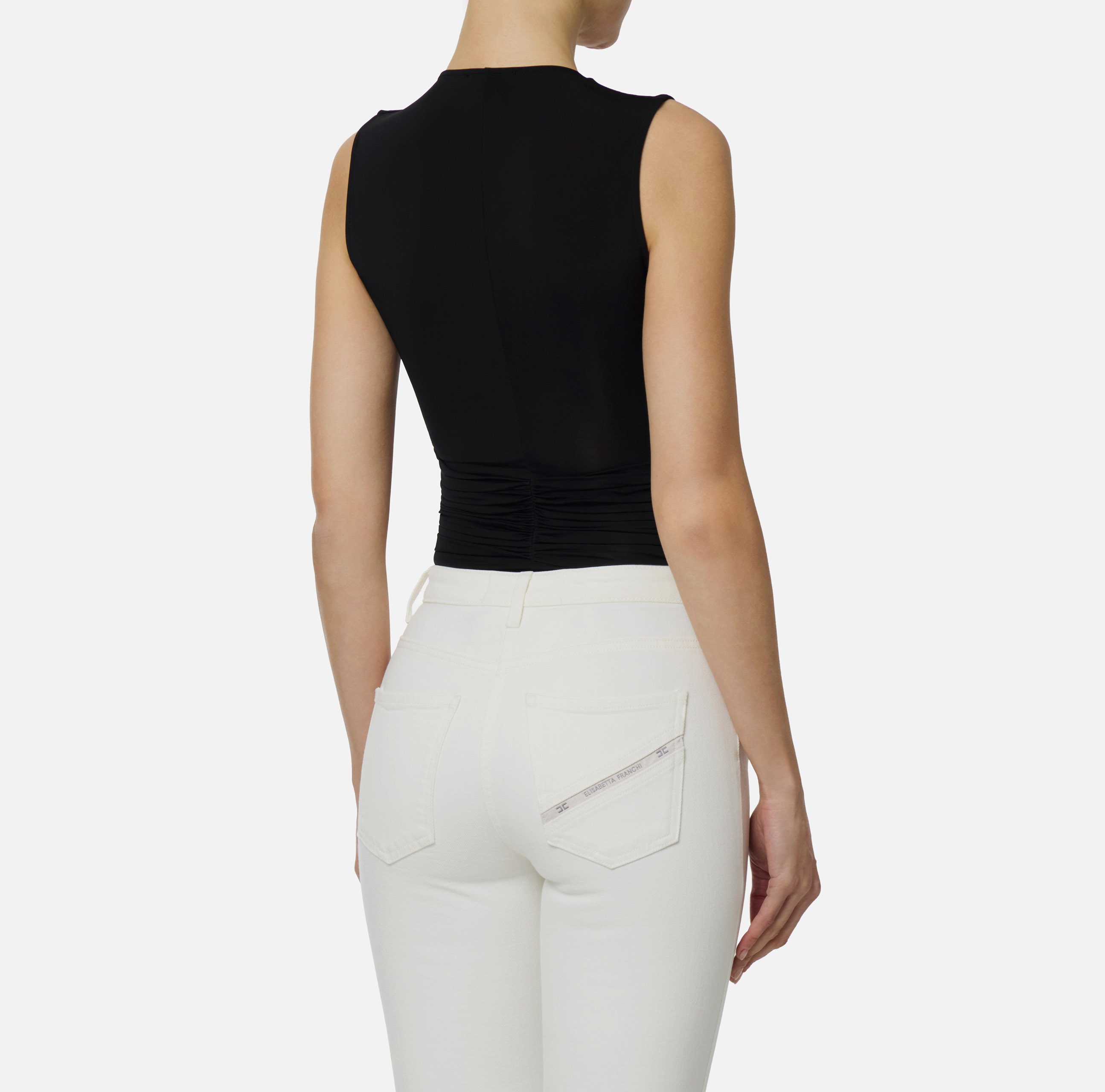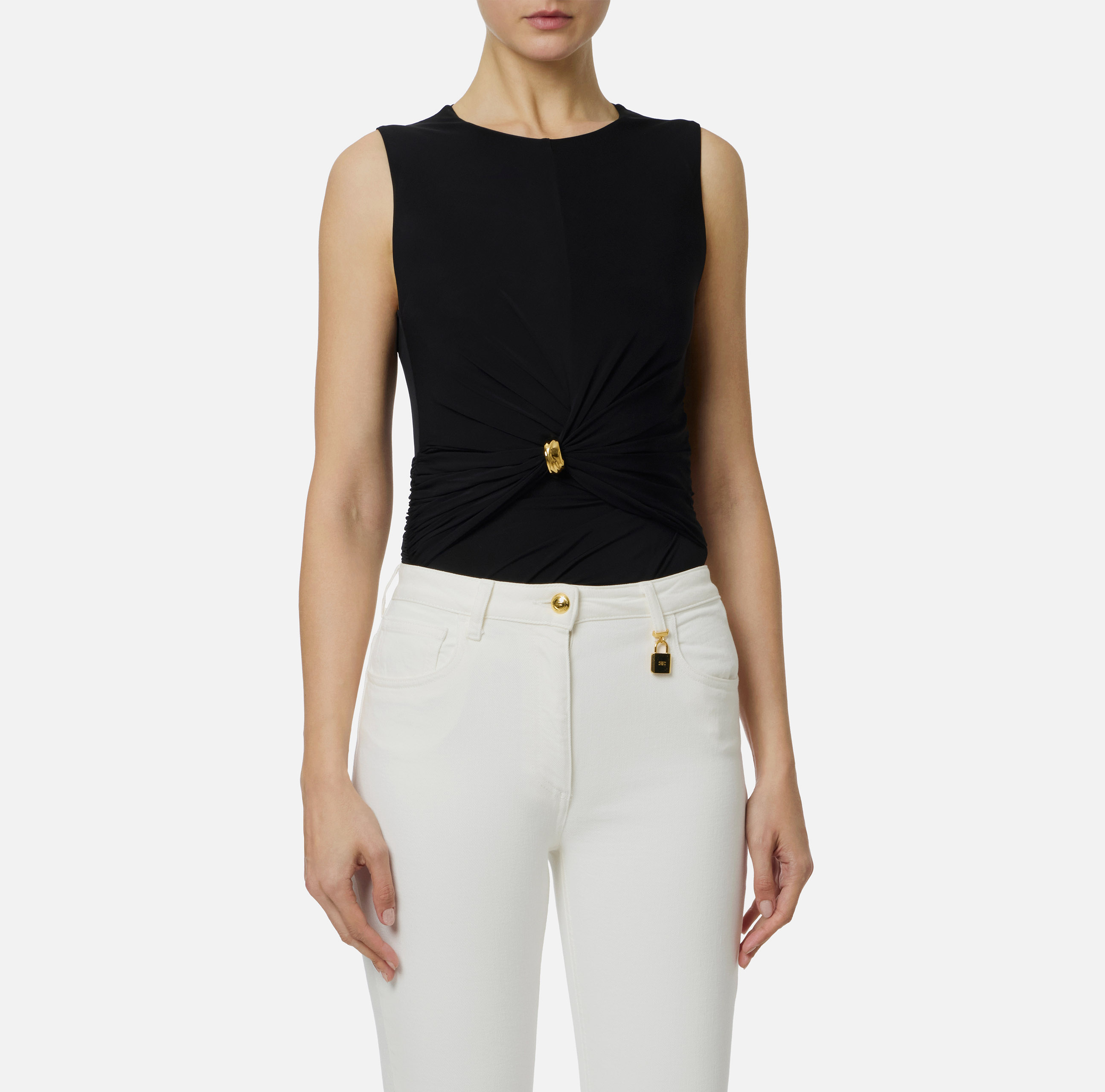 TOP GIROMANICA CON AGGRAPPATURA E DETTAGLIO GIOIELLO ORO