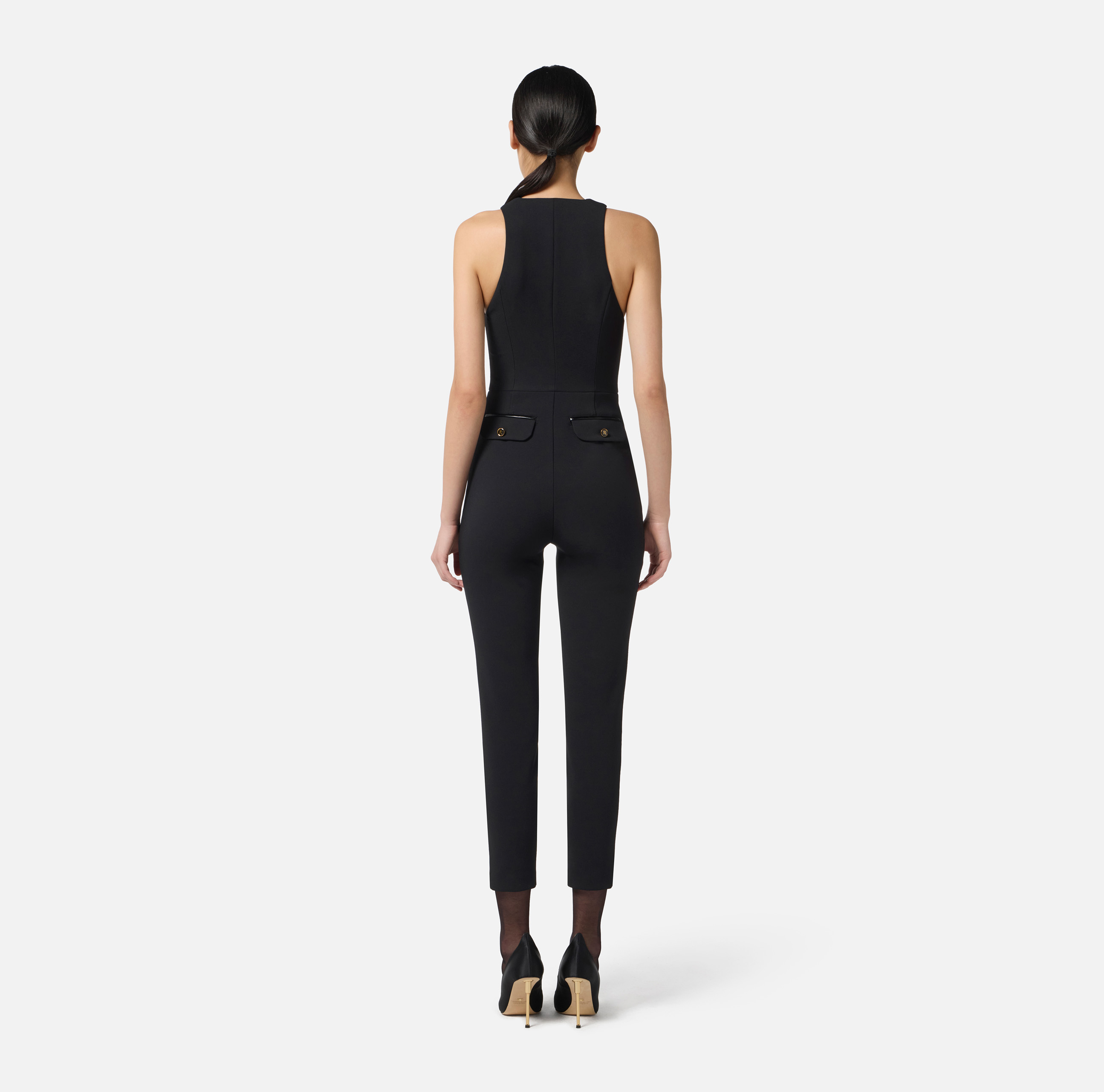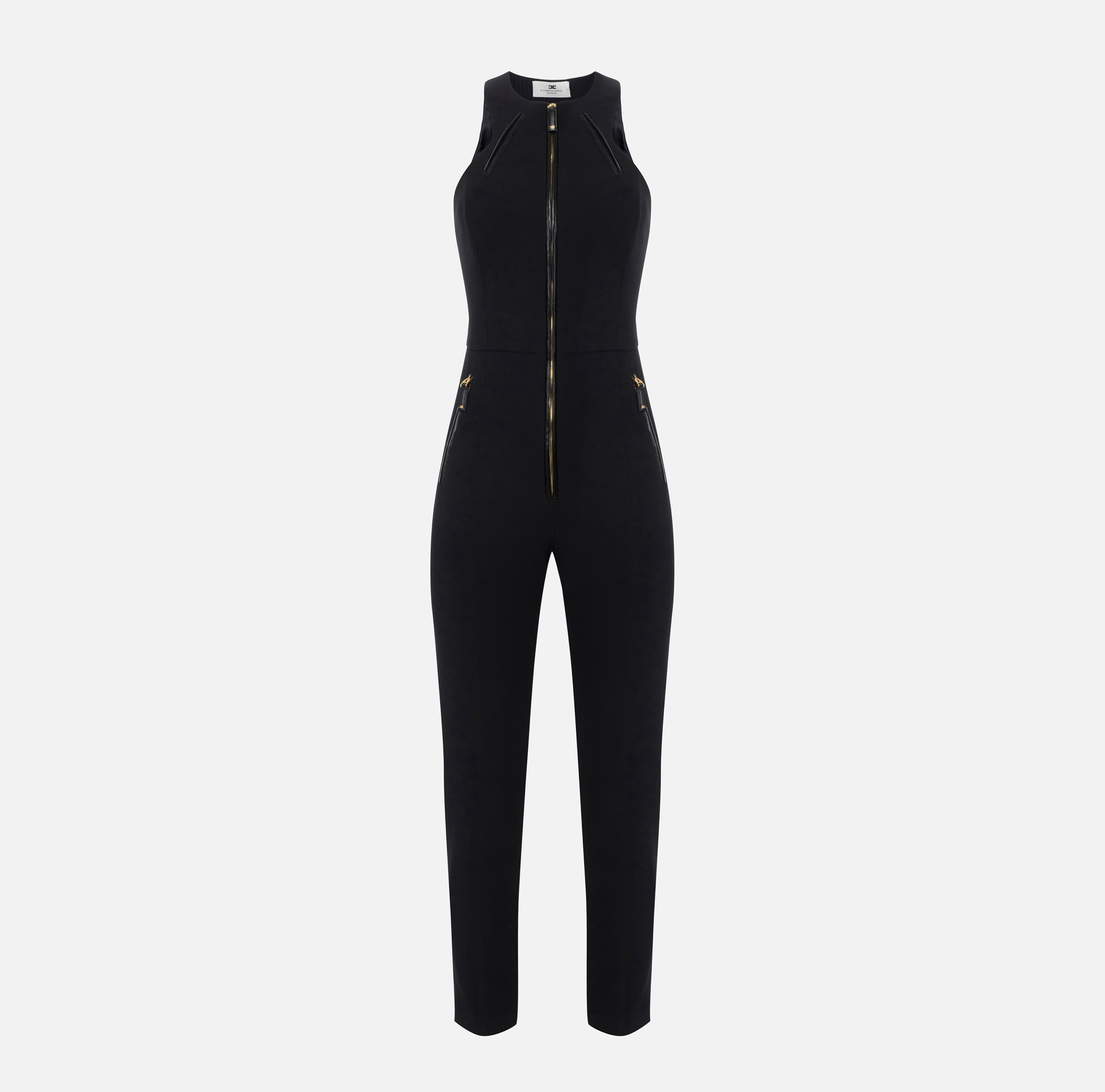 TUTA ADERENTE SCOLLO AMERICANO CON ZIP FRONTALE E DETTAGLI LUCIDI