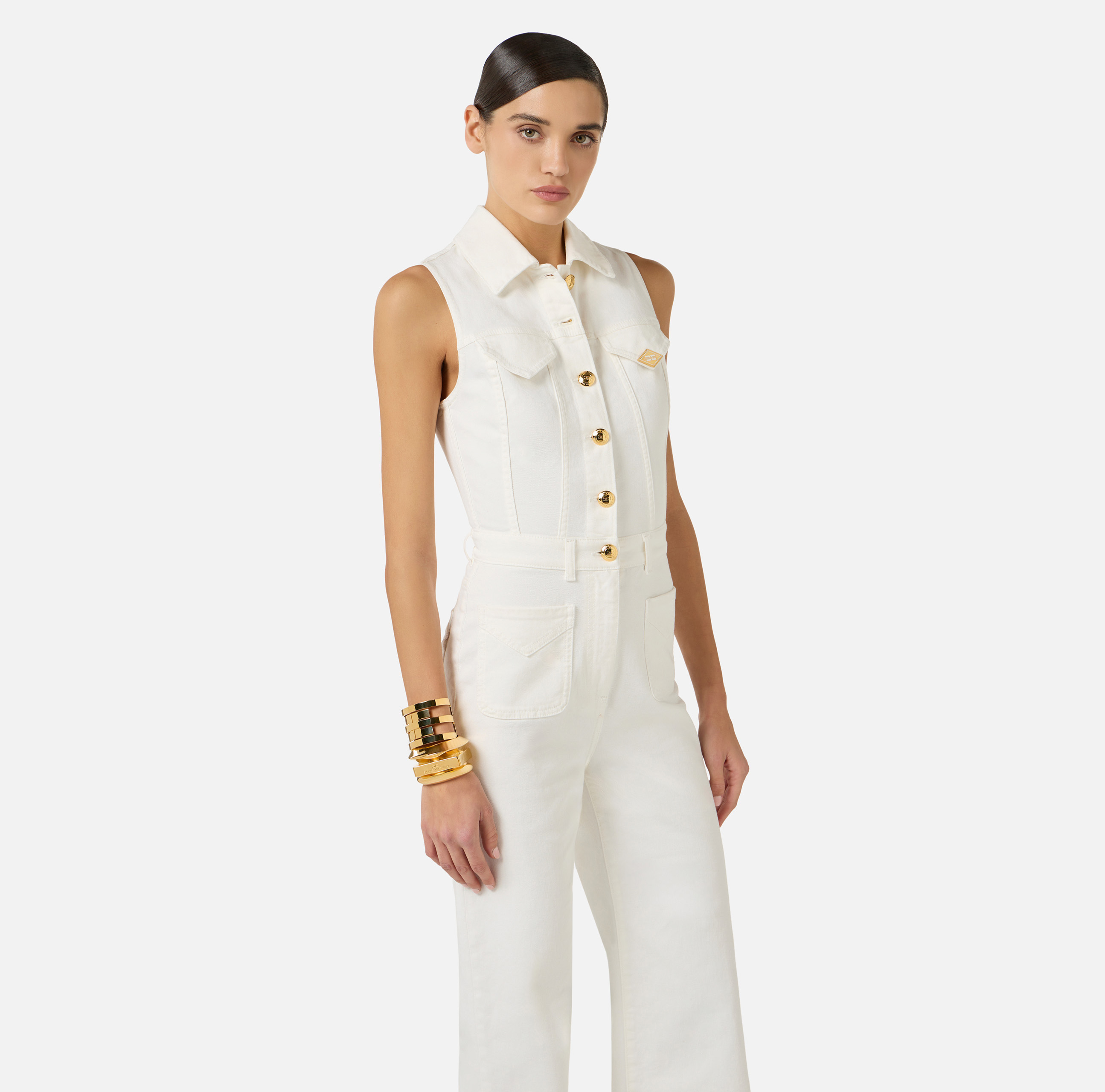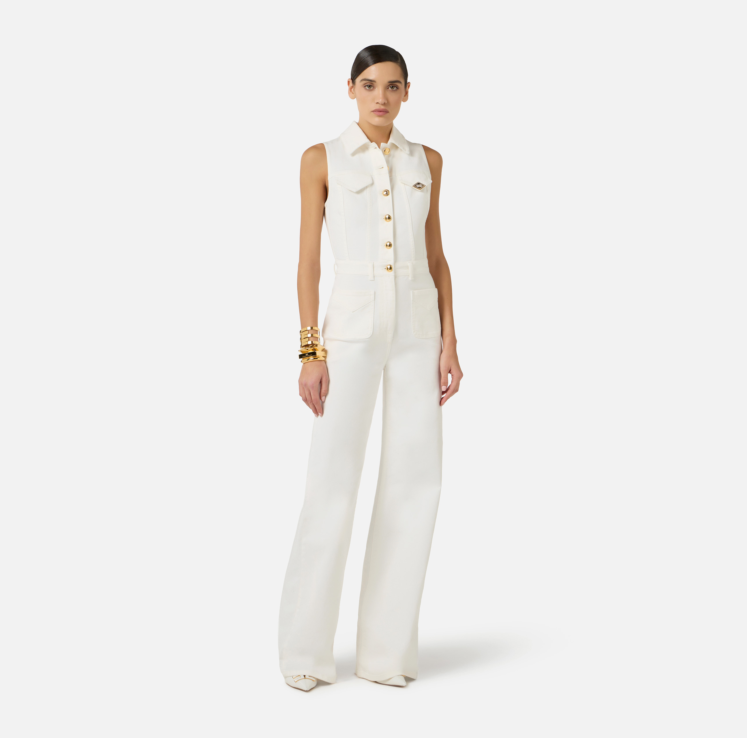TUTA PALAZZO IN DENIM CON BOTTONI E DETTAGLIO LOGO GOLD