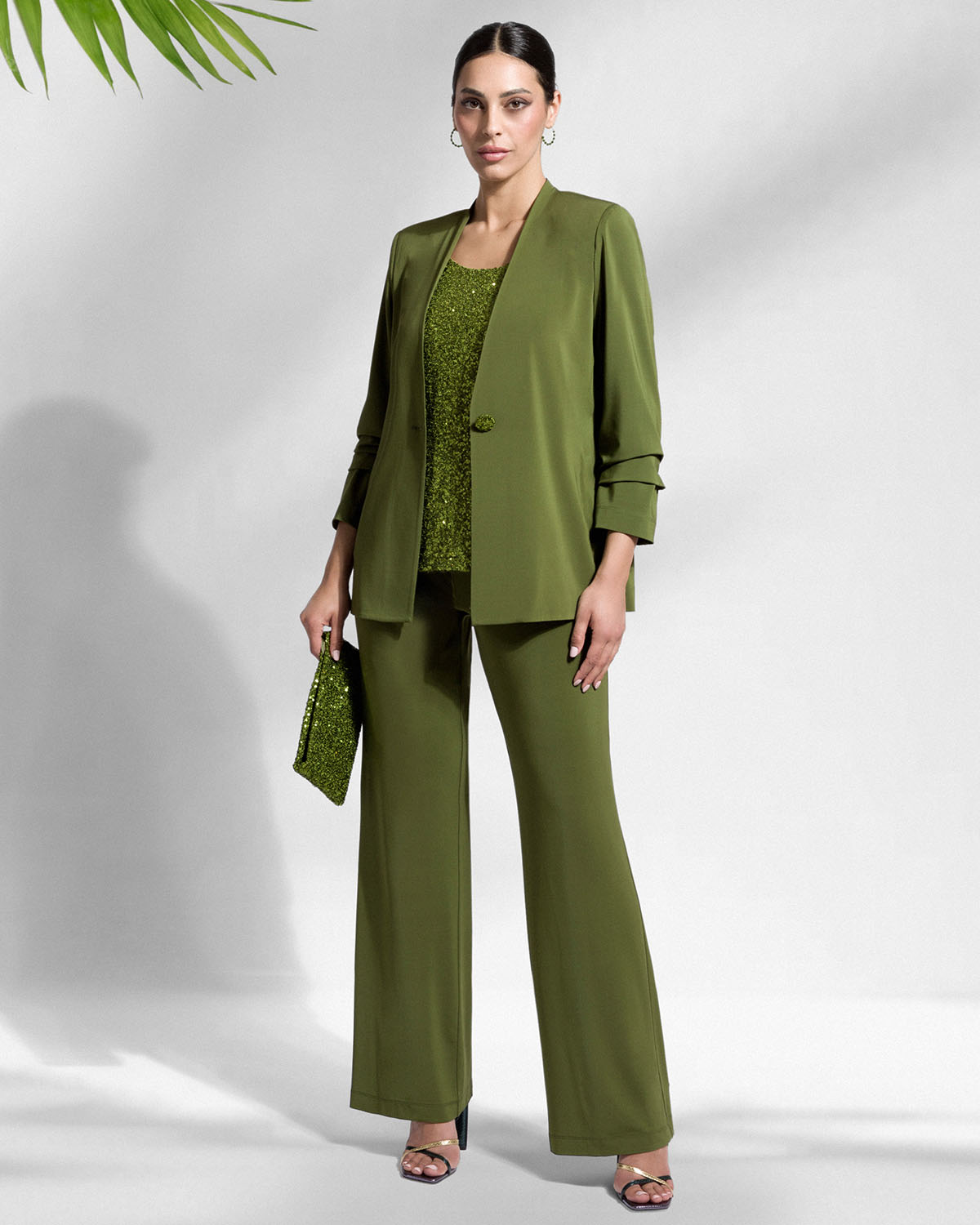 COMPLETO IN JERSEY GIACCA BOTTONE GIOIELLO E PANTALONE PALAZZO