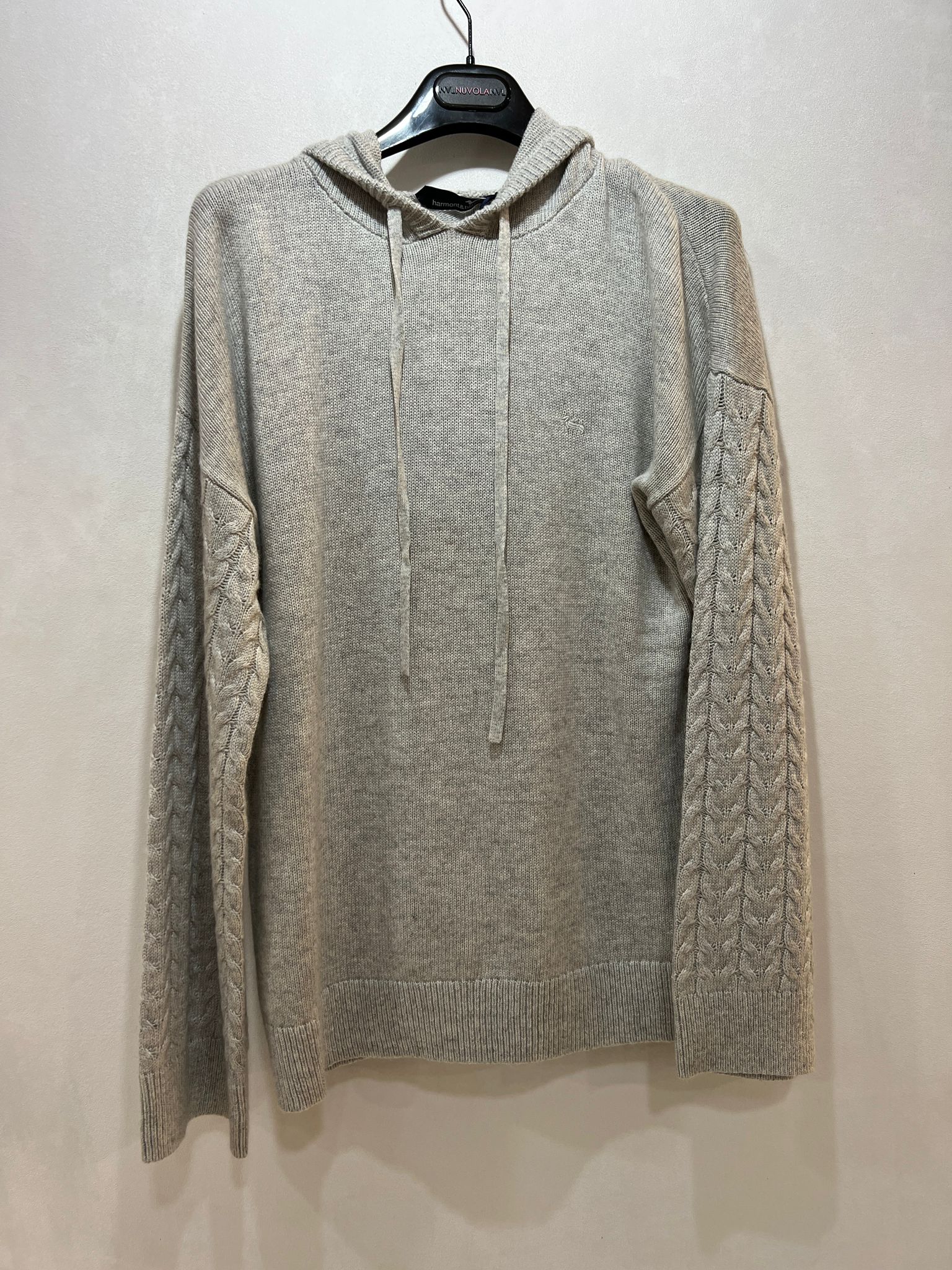 FELPA IN MAGLIA CON CAPPUCCIO LAVORAZIONE A TRECCE SULLE MANICHE