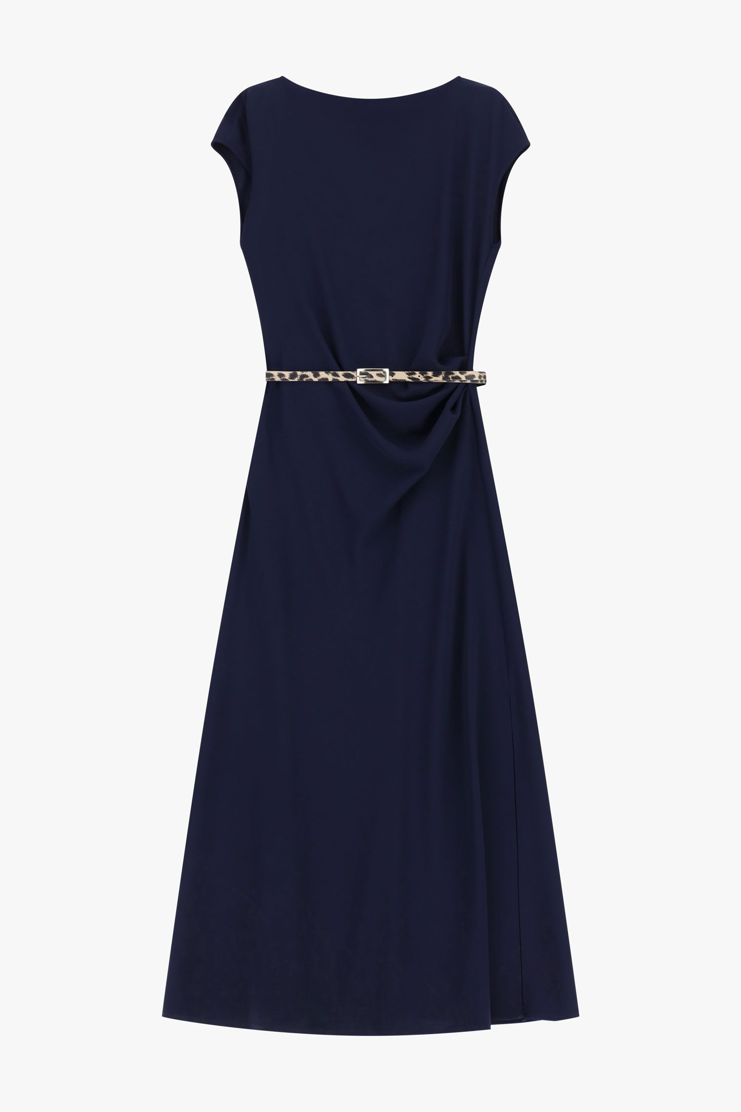 ABITO LUNGO SCOLLO A BARCA CON CINTURINO ANIMALIER