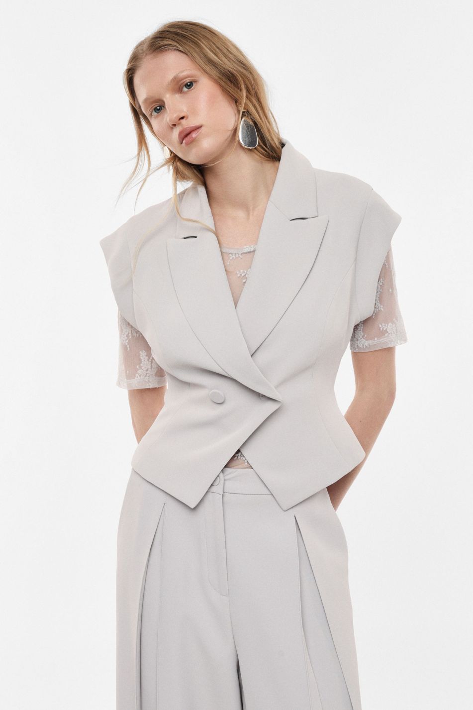 GILET INCROCIATO CON CINTURINO IN LINO