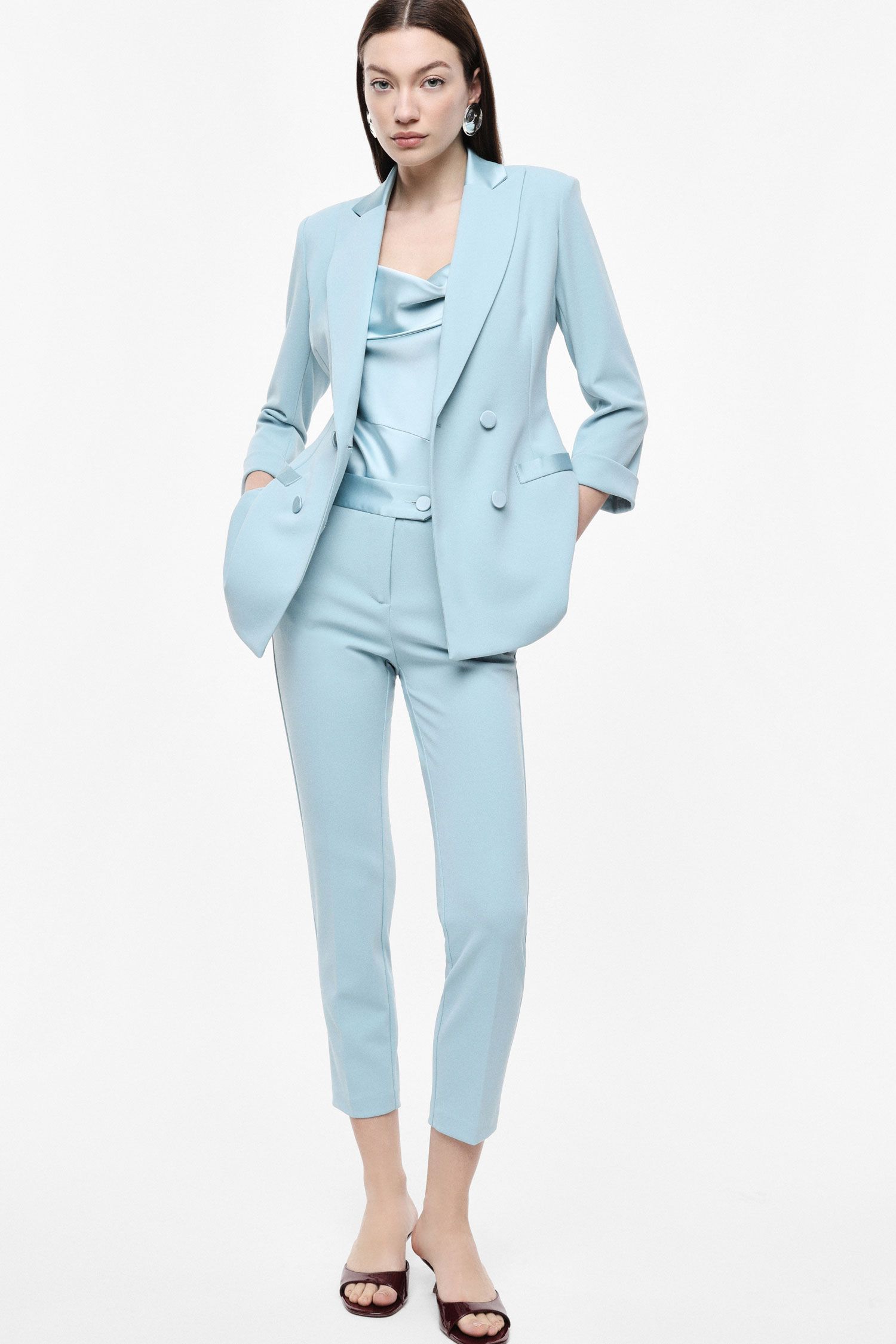PANTALONE SIGARETTA CON FASCIA IN RASO