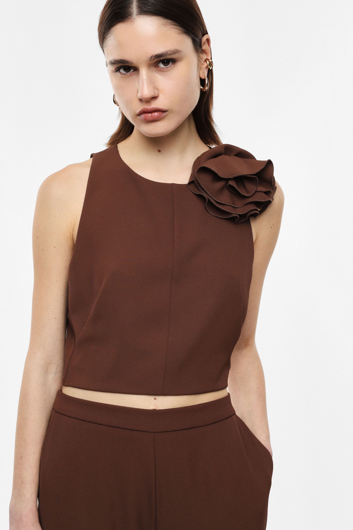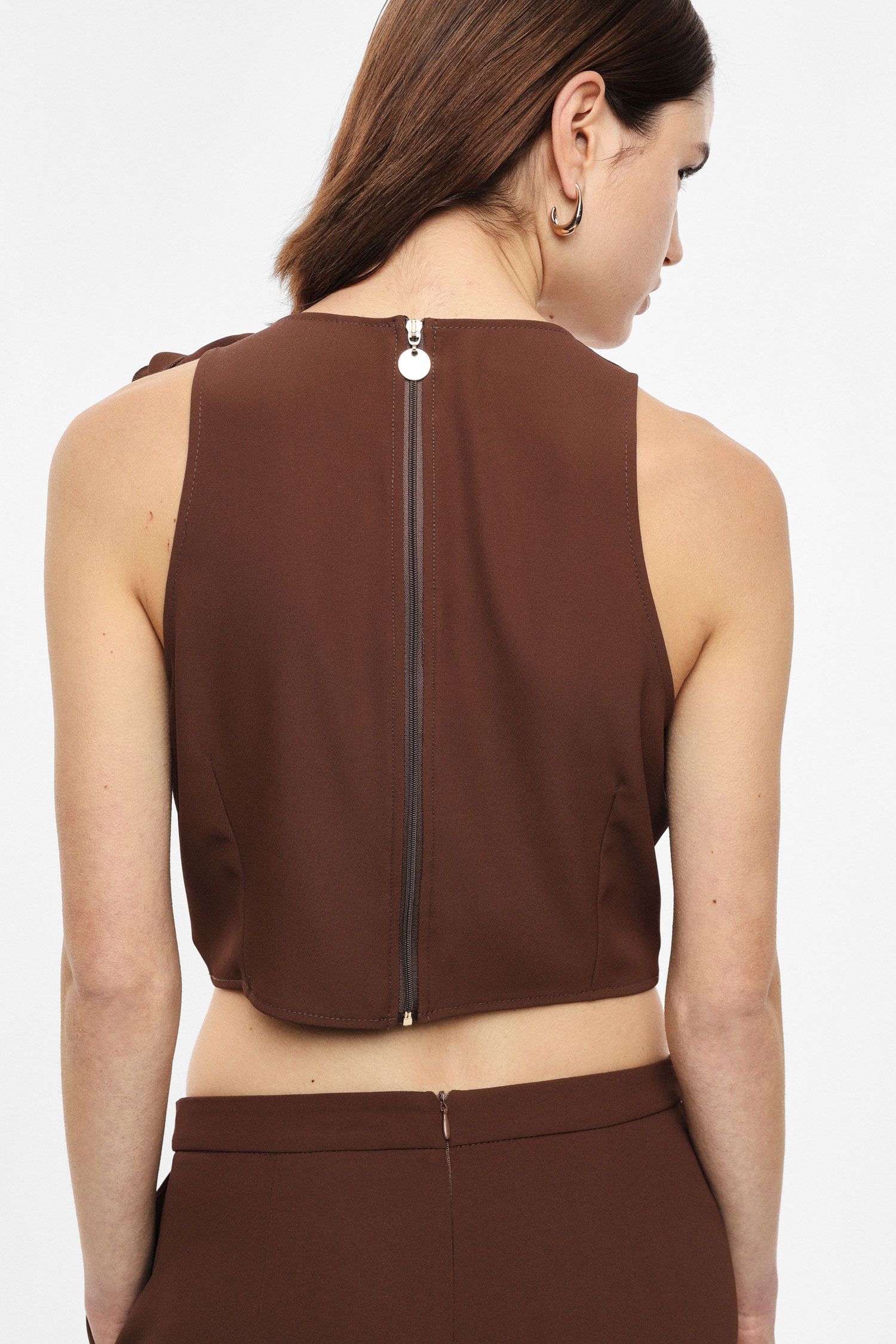 TOP CORTO CON DETTAGLIO FIORE E ZIP SUL RETRO