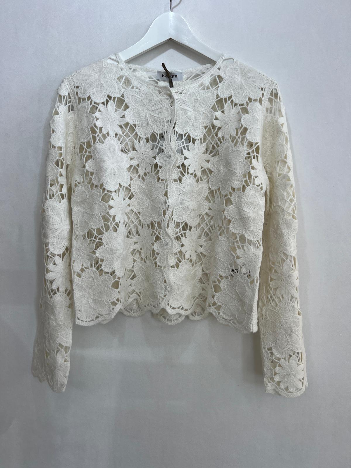 CARDIGAN CORTO RICAMATO CON BOTTONCINI A SCOMPARSA