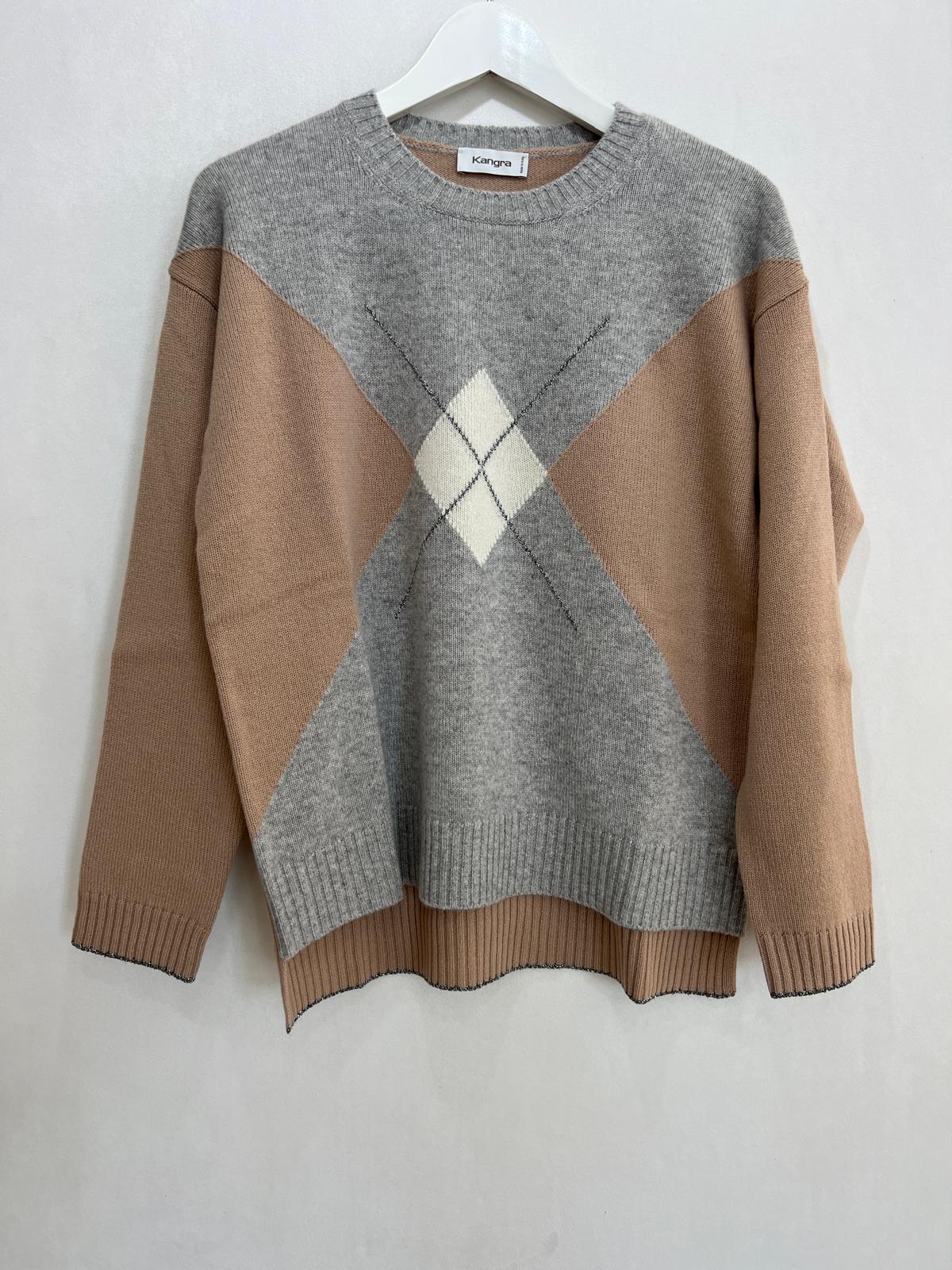 MAGLIA GIROCOLLO CON INTARSIO A ROMBO CON DETTAGLI LUREX