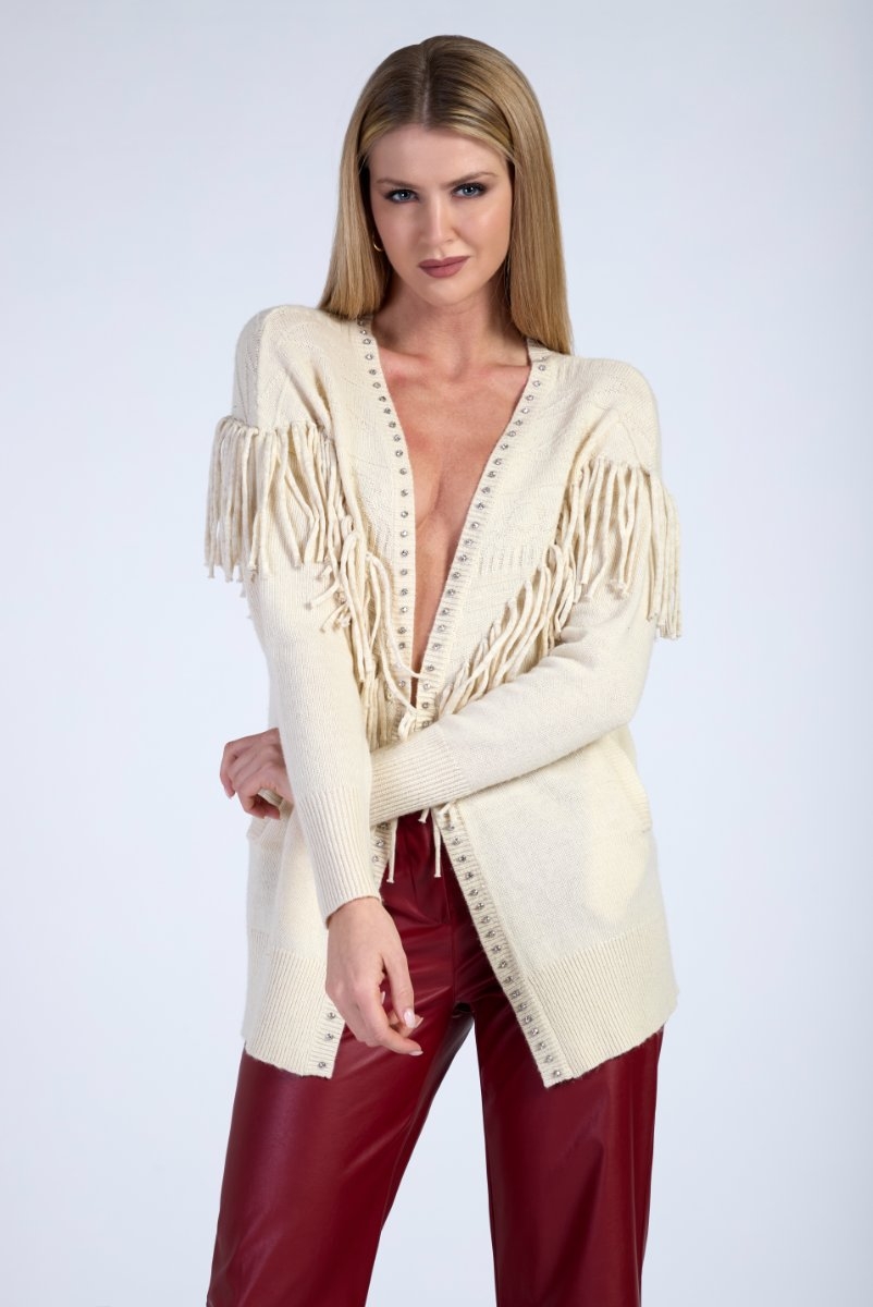 CARDIGAN CON FRANGE E PIETRE PREZIOSE